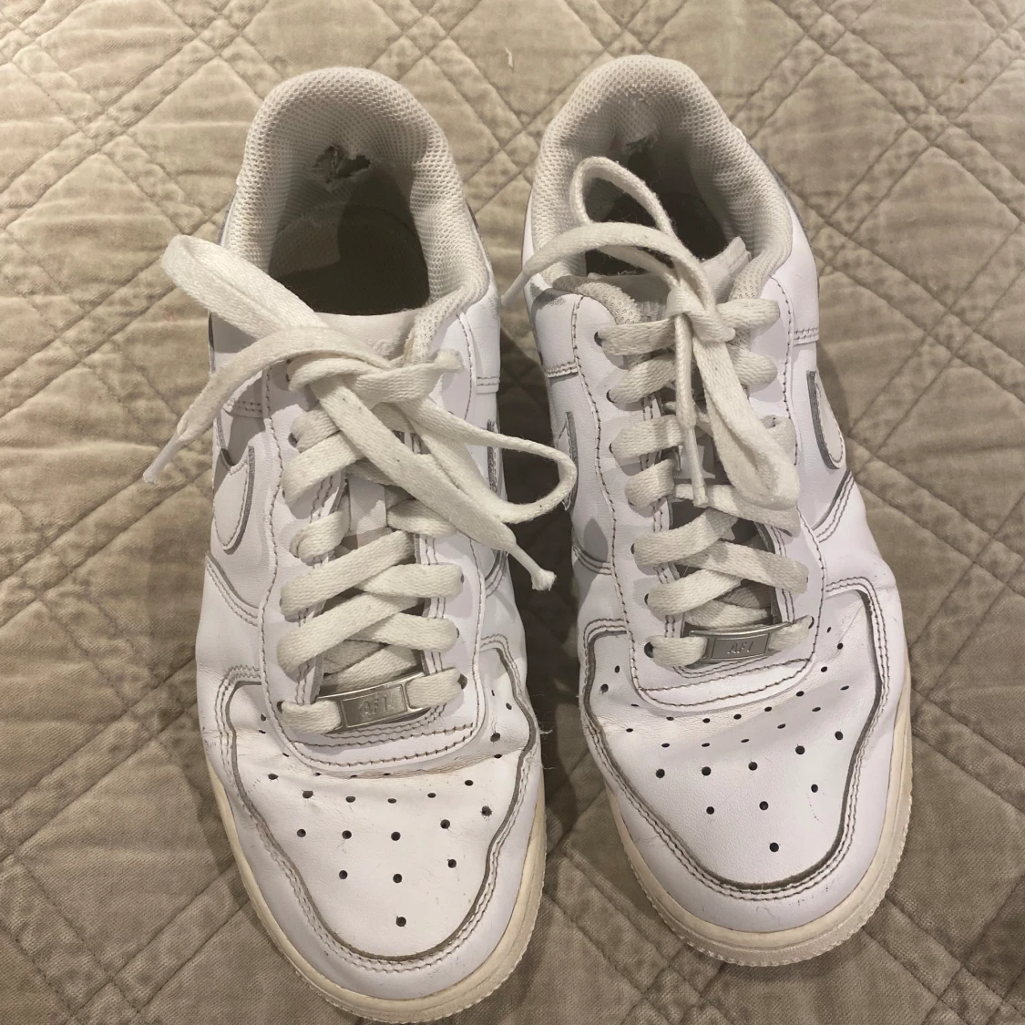 Säljer mina AF1 skor, vita, använda och lite slitage men funkar att användas!👌🏻Storlek 38,5