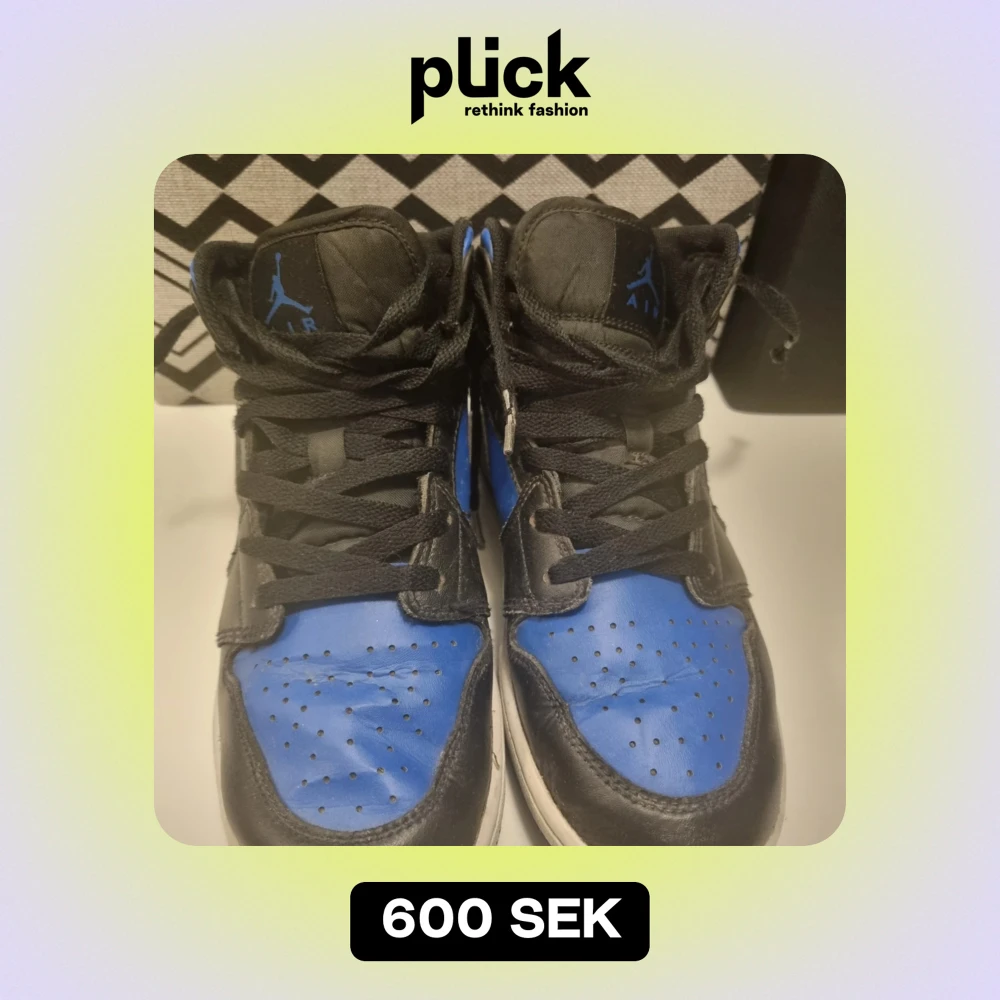 Säljer ett par Nike Air Jordans i svart och blått. Bra skick. Storlek 38.5. Äkta.