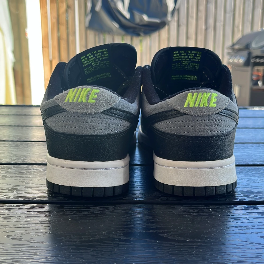 Ett par nike dunks low black gray green strike utan box i storlek 38 1/2 som jag säljer för 1000kr finns ej att köpa längre. Skicket på dessa är 9 av 10 som knappt är använda pågrund av jag växt ifrån skorna.
