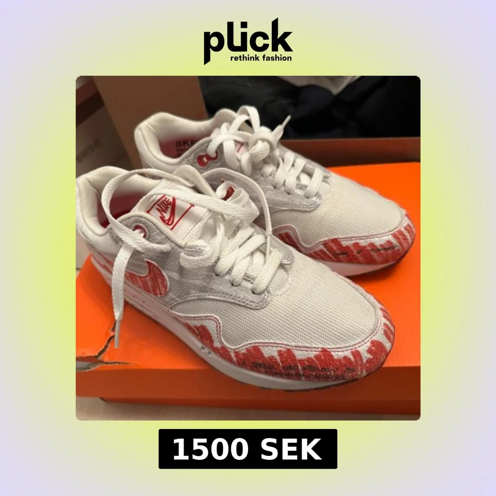 Nike Air Max 1 Sketch to Shelf sneakers i vit mesh och mocka med röda handritade detaljer och Swoosh. Unik design med synliga skisslinjer och transparent sula med rutmönster. Skorna har snörning och platt sula, perfekt för dig som gillar statement pieces.