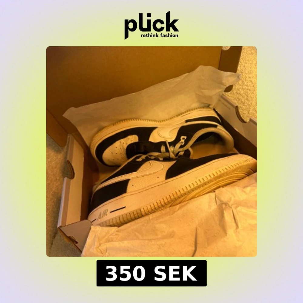 Säljer ett par Nike Air Force 1 '07 i svart och vitt skinn. Klassisk low-top modell med perforerad tå, vit sula och svarta detaljer. Ikonisk Swoosh-logga på sidorna och snörning framtill. Perfekta sneakers för dig som gillar streetstyle.