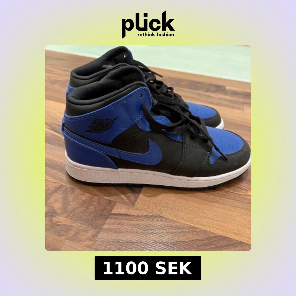 Använda 1 gång. Lite dammiga då dem bara stått och samlat damm, lätta att rengöra. Snygga Nike Air Jordans i en cool kombination av svart och blått. Skorna har en klassisk hög design med snörning och en vit sula som ger en sportig look. Perfekta för dig som vill ha stil och komfort i ett.