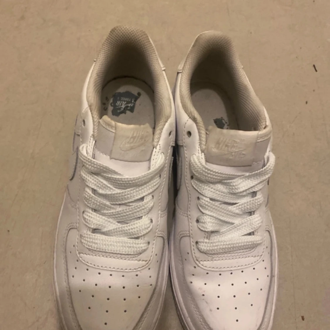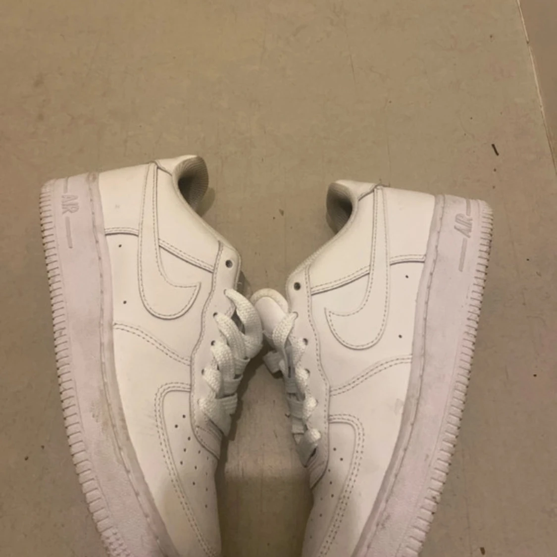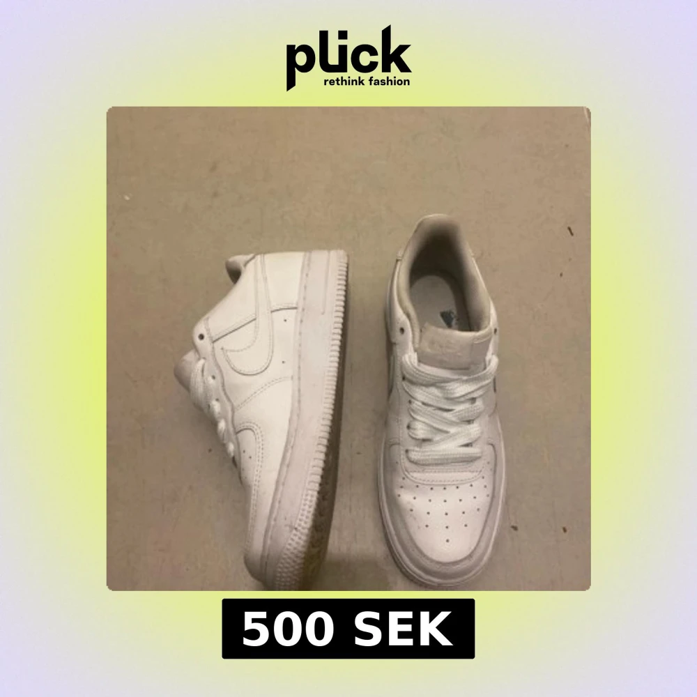 Klassiska helvita Nike Air Force 1 sneakers med rund tå och snörning. Skorna har en platt sula och är tillverkade i syntetmaterial med diskret Nike-logga på sidan. Perfekta för en stilren och sportig look. Pris kan diskuteras .HELT NYA!!!!!