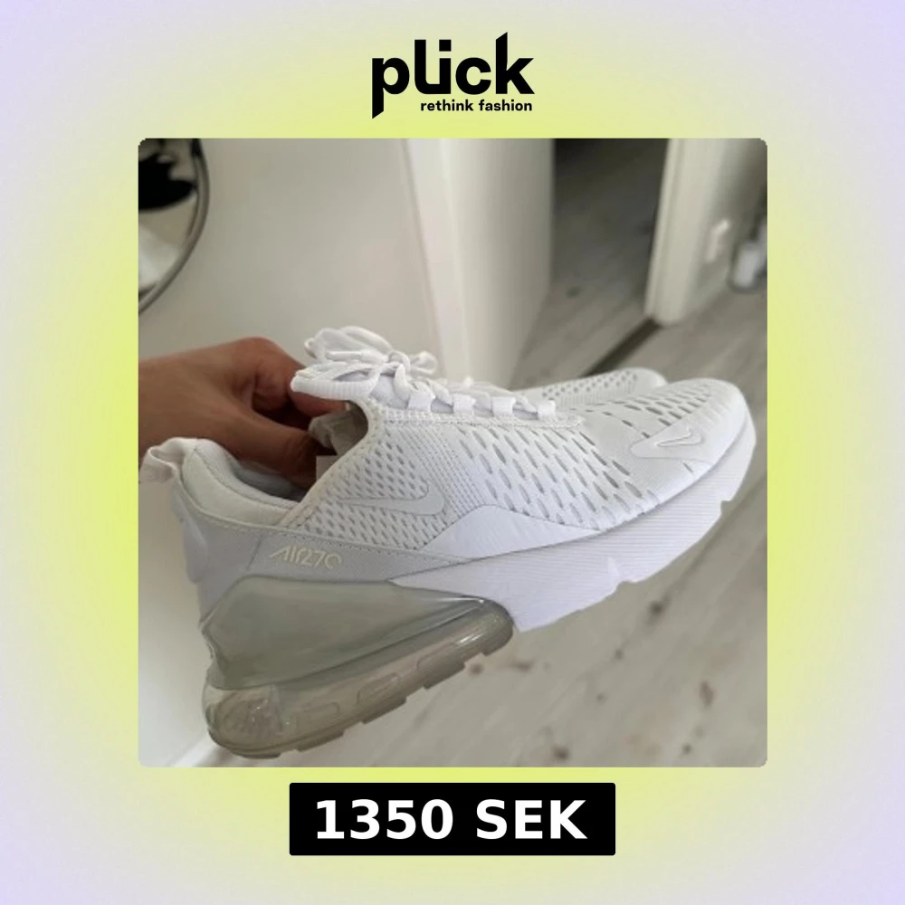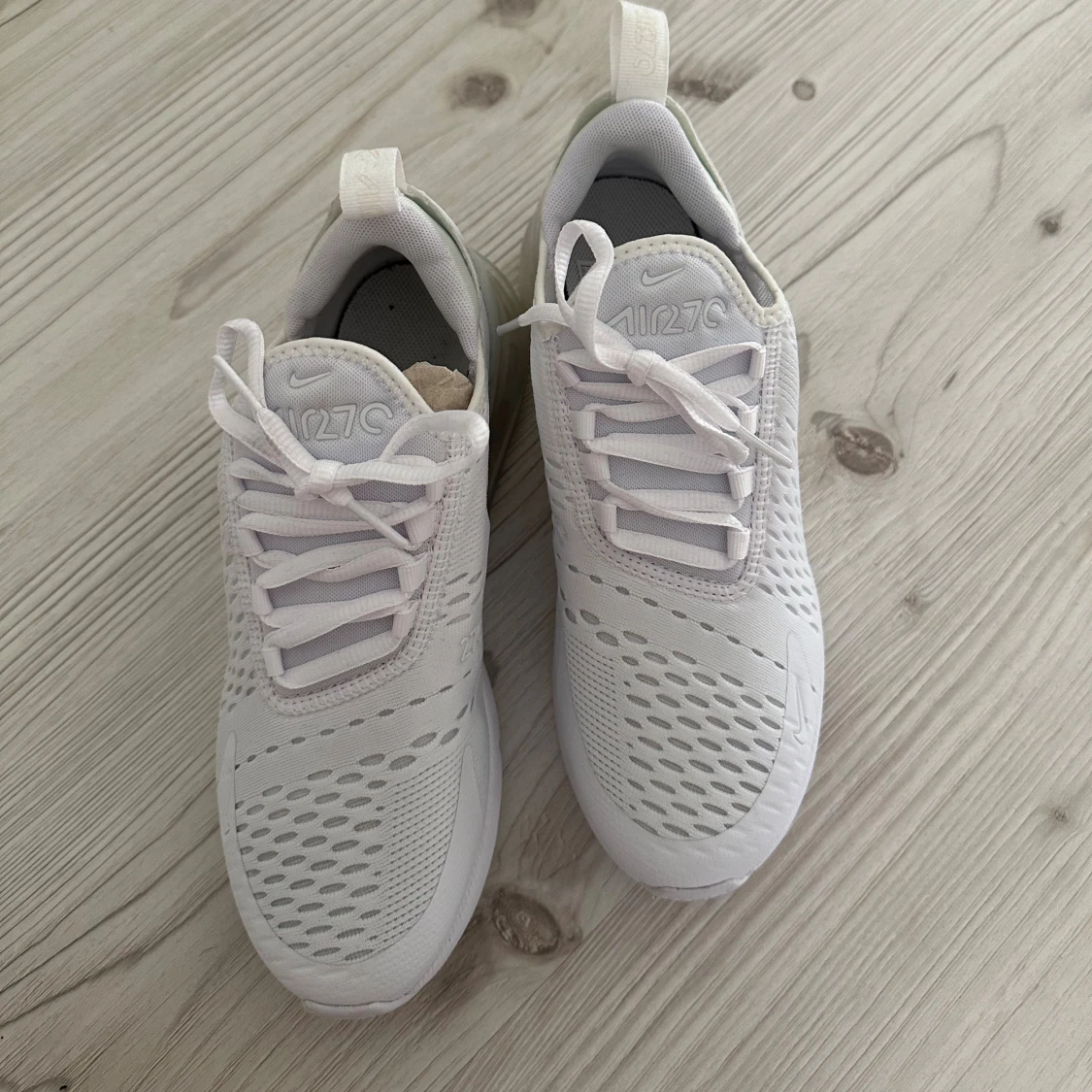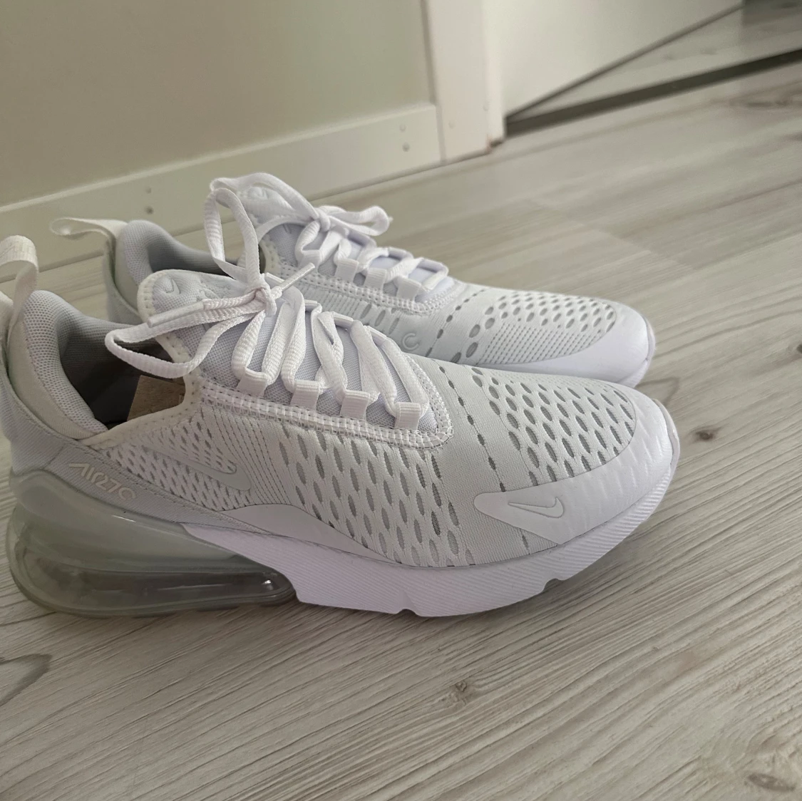 Nike Air 270 sneakers i helvitt med ventilerande mesh-ovandel, tydlig Air Max-sula och snygga detaljer. Skorna har snörning och en modern, sportig look med rund tå och platt sula. Perfekta för dig som gillar stilrena och bekväma sneakers.