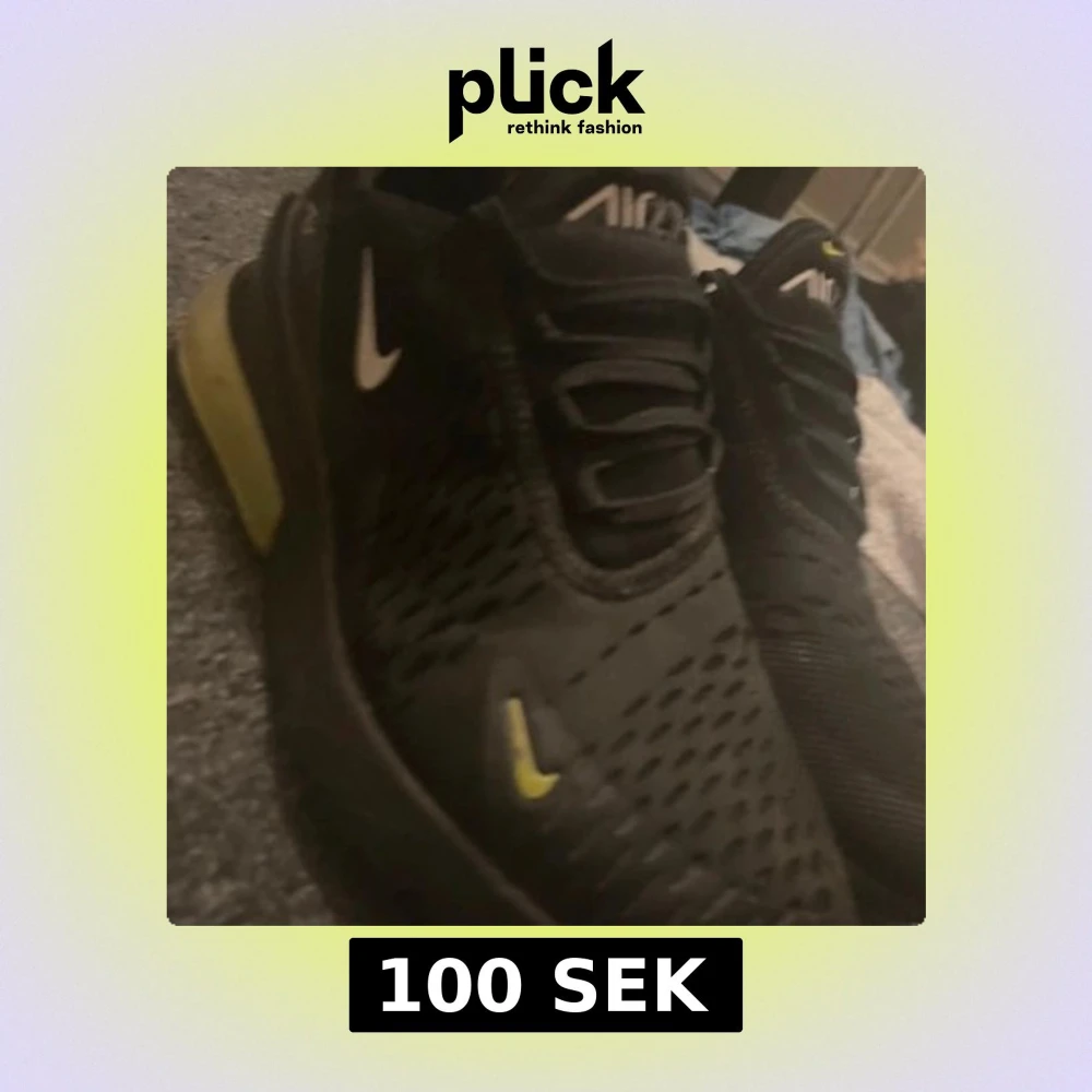 Svarta Nike Air Max 270 sneakers med gula detaljer och vit logga. Ovandelen är i ventilerande syntetmaterial med snörning och rund tå. Sulan har en tydlig air-enhet baktill och gult inslag på sidan. Perfekta för dig som gillar sportig och modern stil. Lite färg fläckar som jag tyvärr inte tror att man kan få bort men är inte säker har bara försökt med vatten och ett hål vid tån