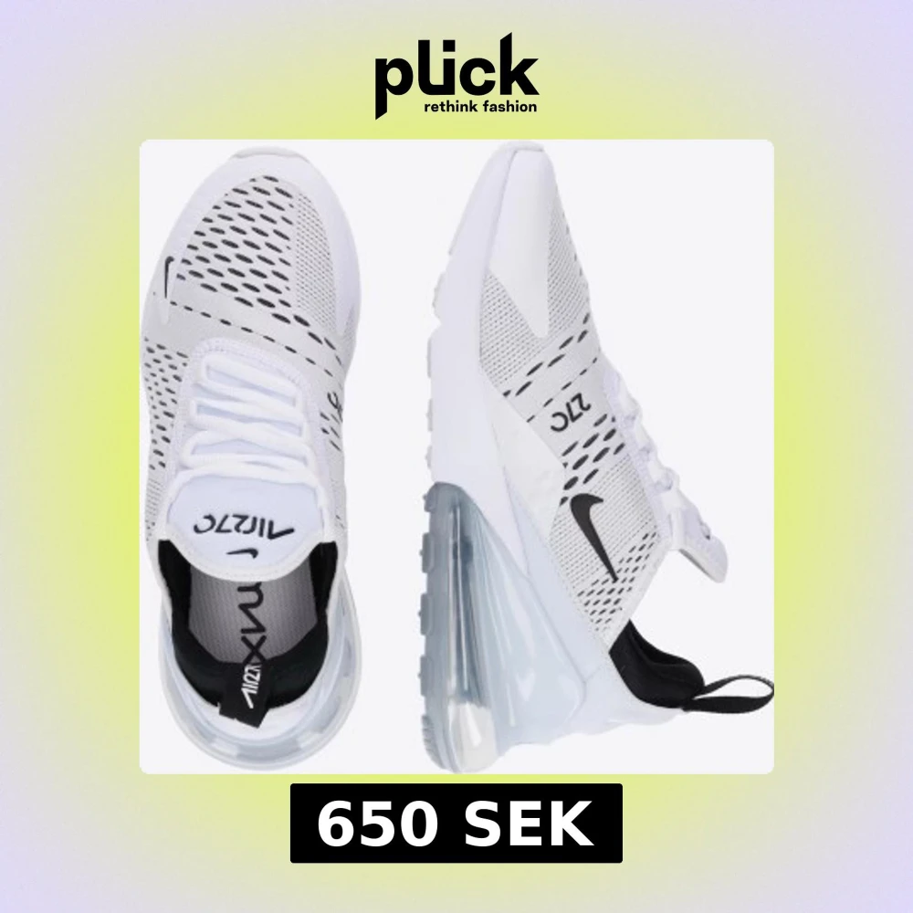 Nike Air Max 270 sneakers i vitt/grått med svart. Använda 2-3 gånger max, säljer då de ej kommer till användning. Kartong medföljes.