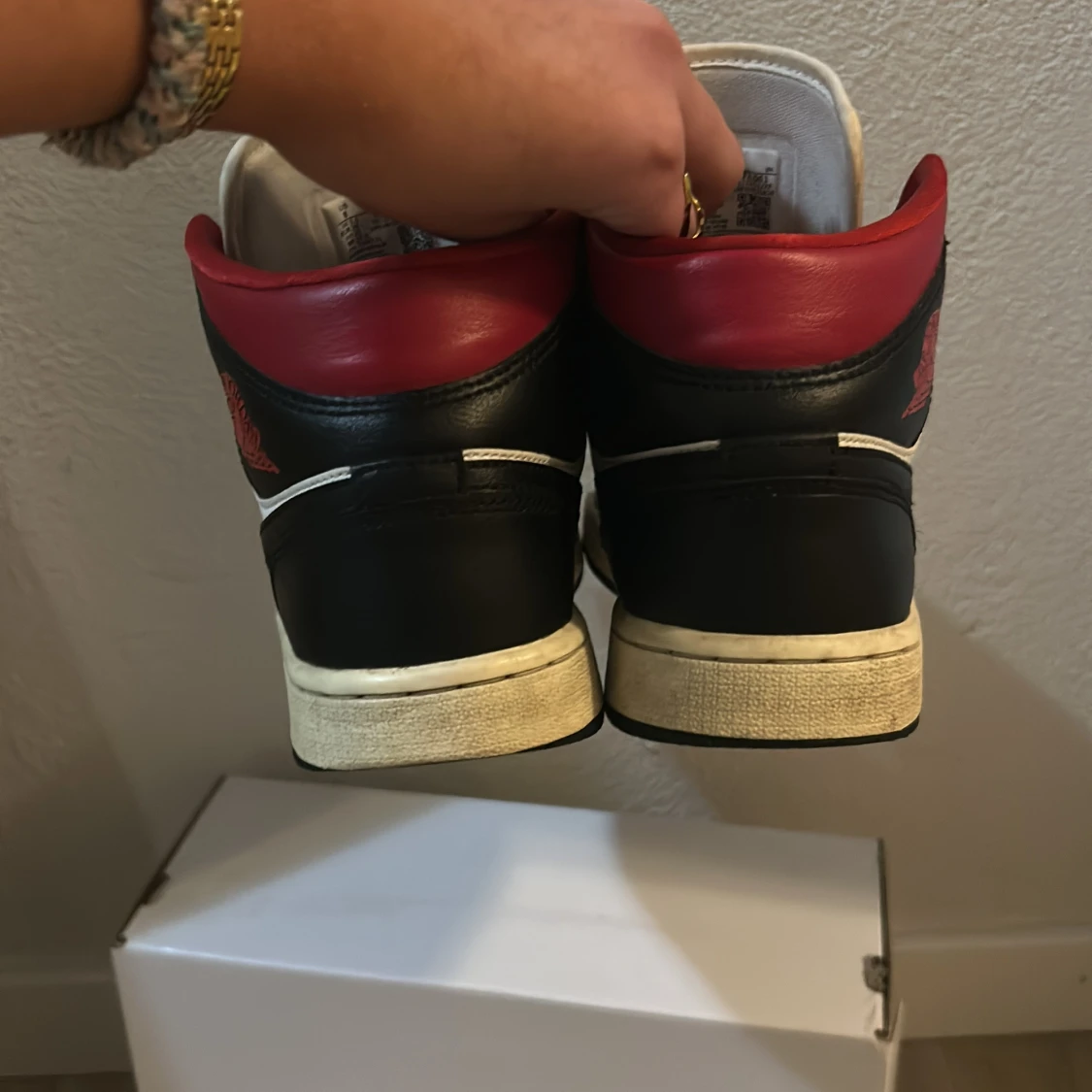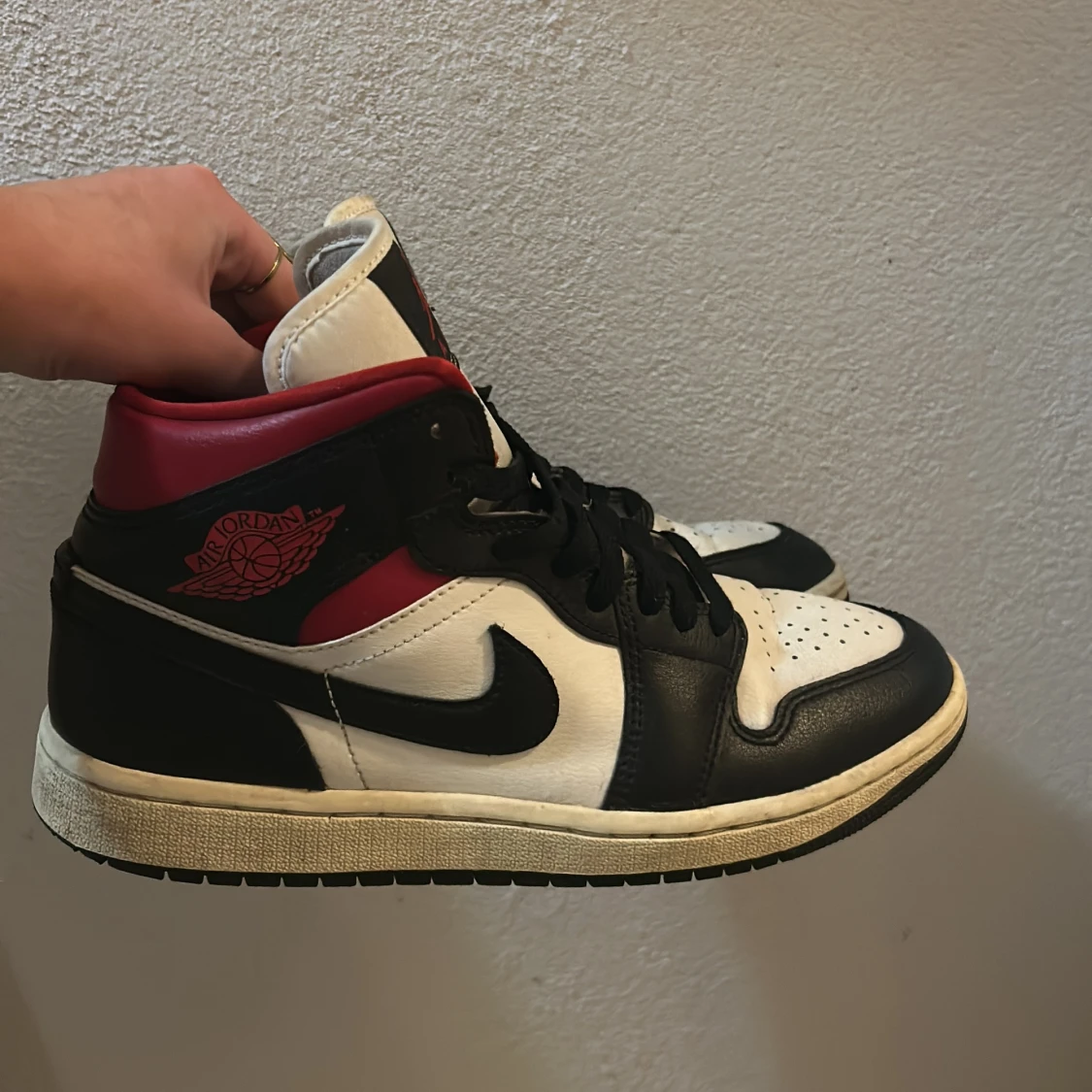 Nike Air Jordans i svart, vitt och rött