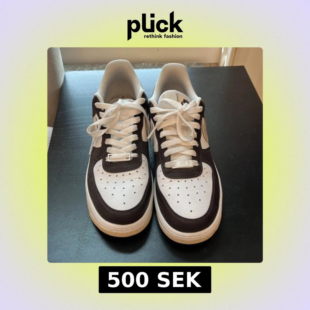 Snygga Nike Air Force 1 sneakers i brunt och vitt skinn med beige swoosh och detaljer. Klassisk siluett med perforerad tå, vit sula och snörning. Perfekta för dig som vill ha en clean och tidlös look med streetkänsla.