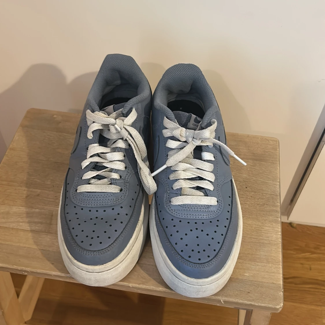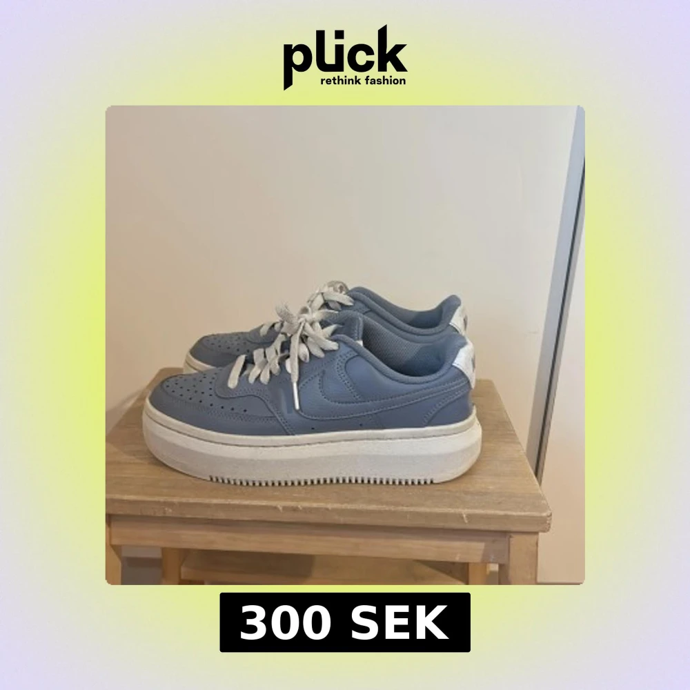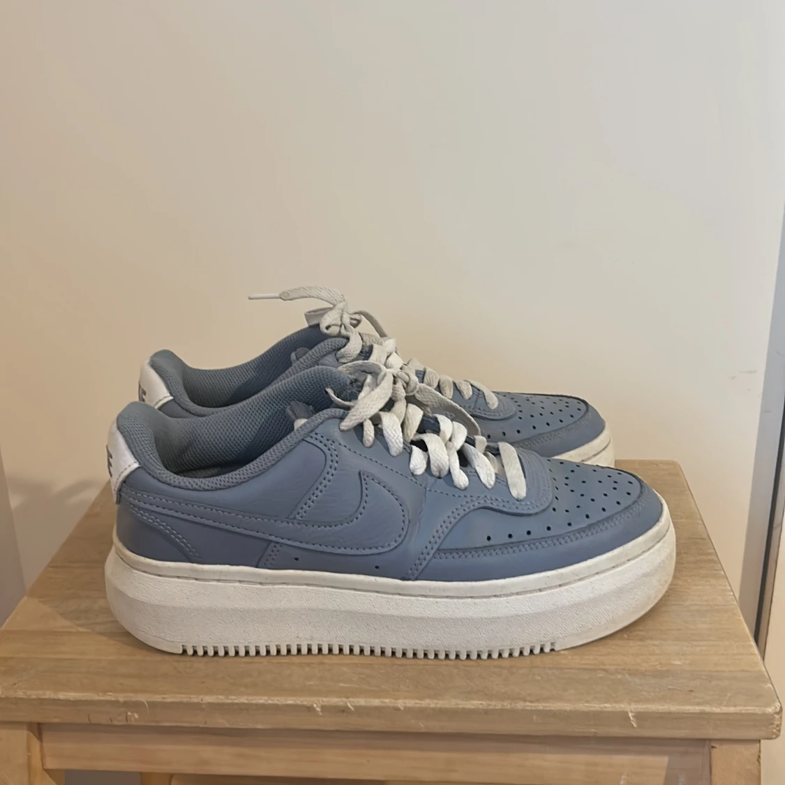 Nike Air Force 1 sneakers i en snygg blå färg med vita detaljer och snörning. Skorna har en platt, tjock sula och perforerad tå för extra ventilation. Tillverkade i skinn med meshfoder för skön komfort. Perfekt för dig som gillar klassisk streetstil och vill sticka ut.