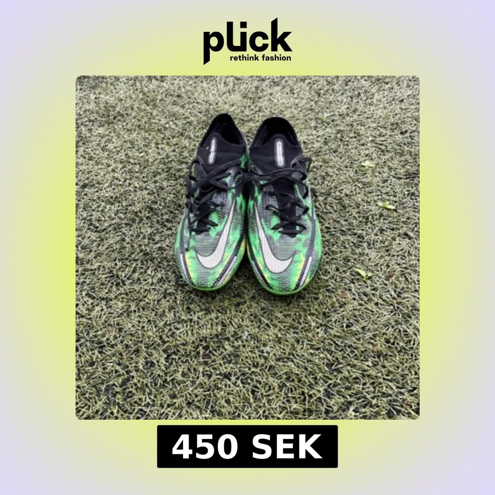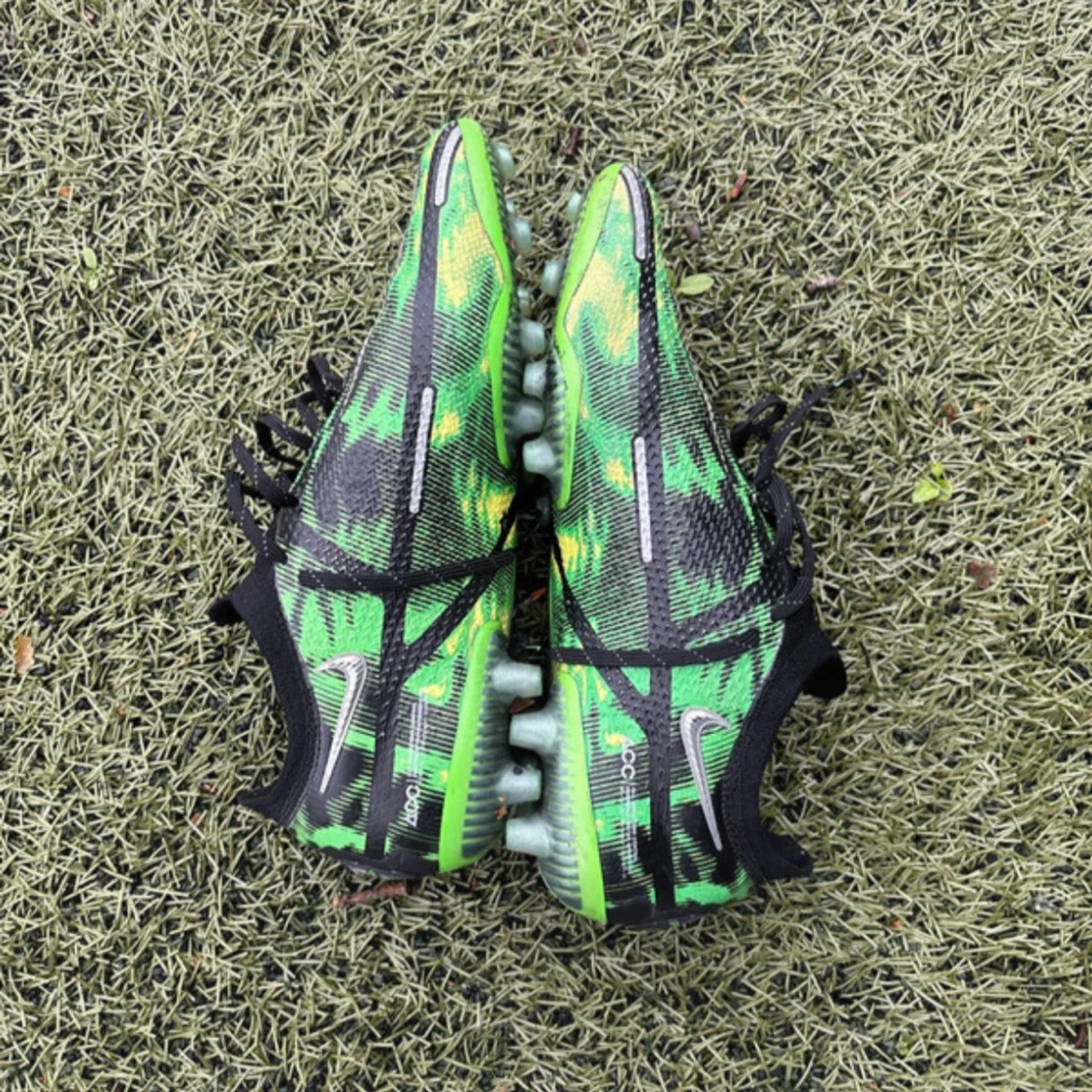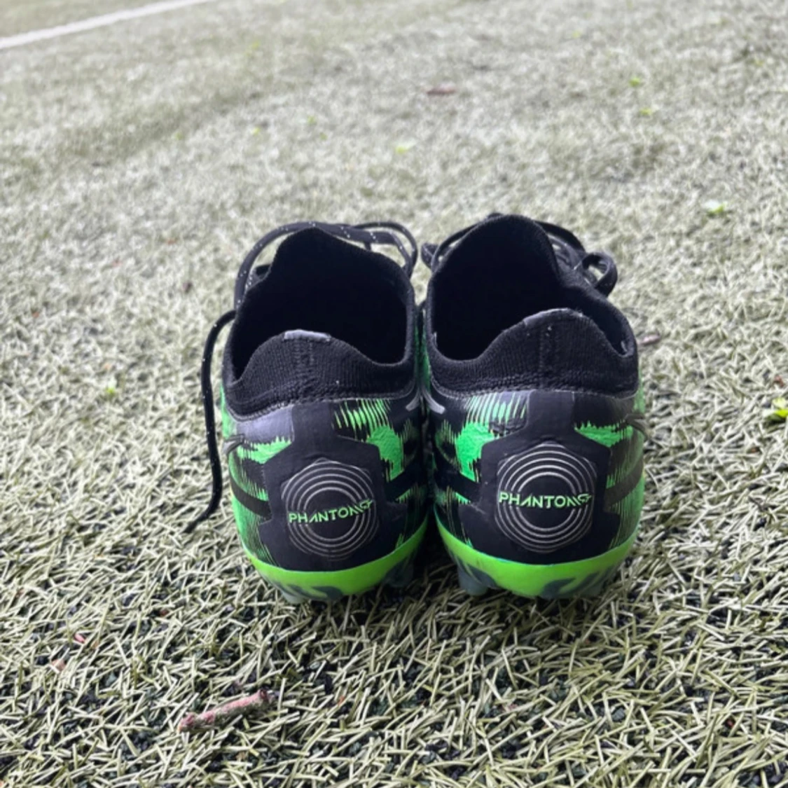 Säljer ett par Nike Phantom GT2 Elite fotbollsskor i svart och grönt med silverdetaljer.