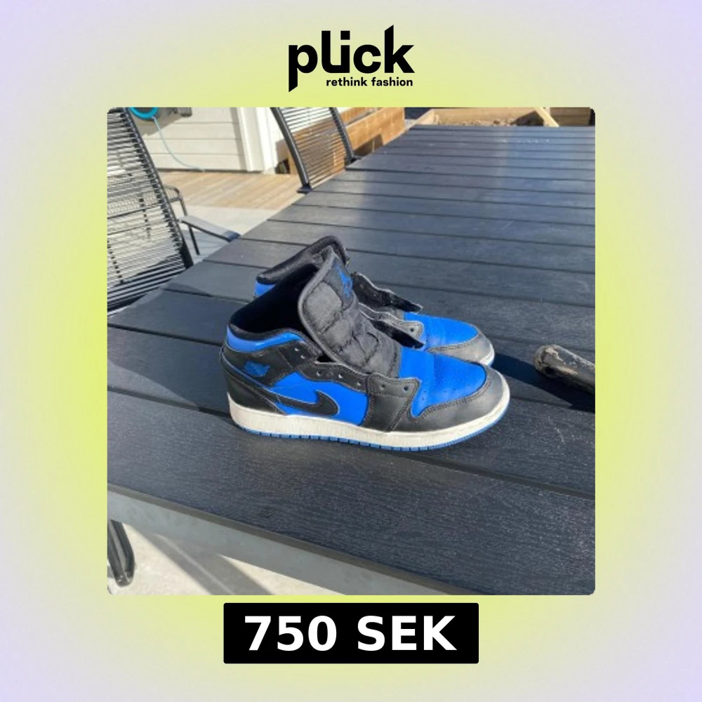 Snygga Nike Air Jordans i svart och blått med klassisk snörning och rund tå. Skorna har en vit sula som kontrasterar mot det svarta och blåa lädret. Perfekta för dig som vill ha en stilren och sportig look. (Skosnören följer med). Hör av dig vid frågor!