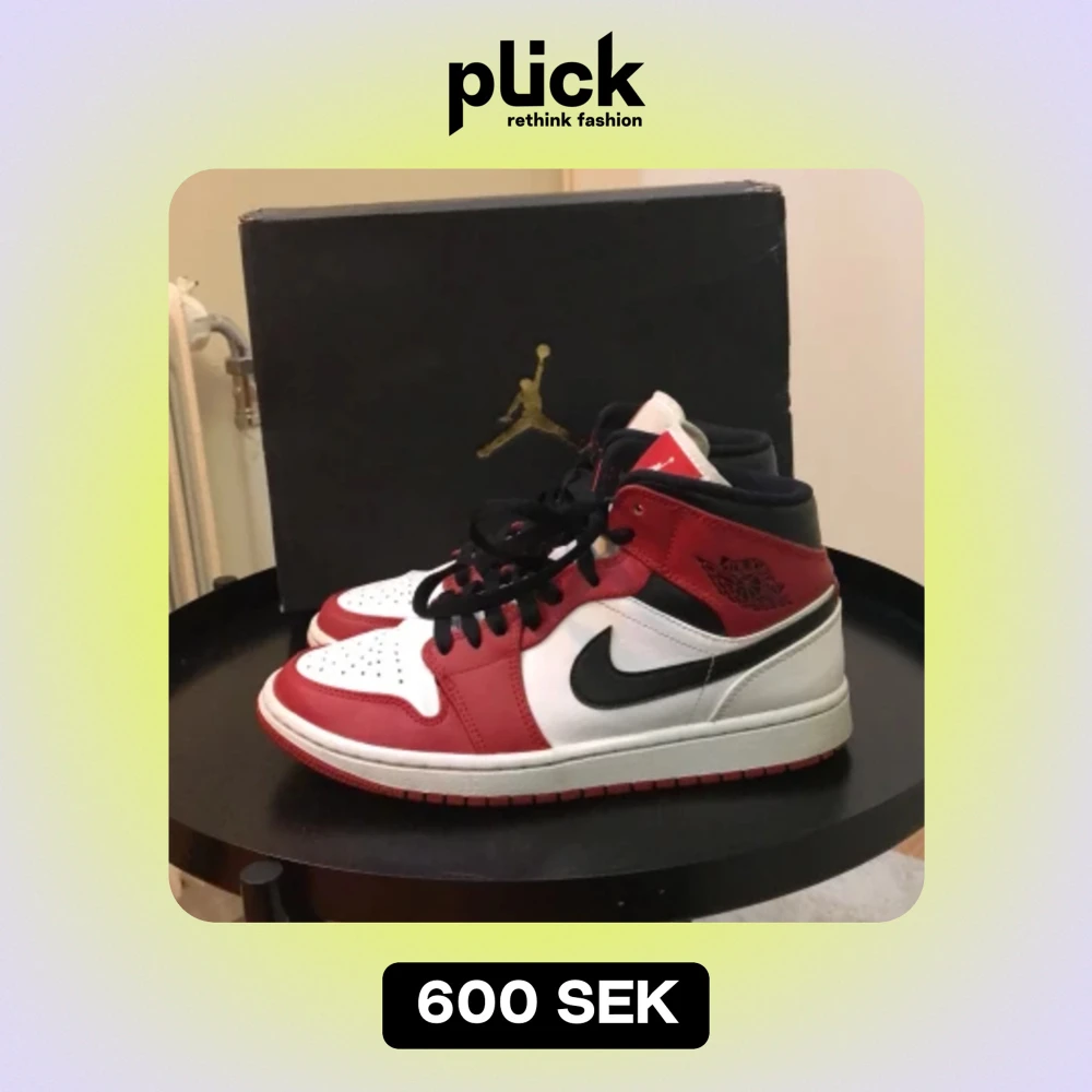 Säljer nu mina Jordan 1 Chicago som blivit för små. Dem är i bra skick och det är nya skosnören 👍👍👍Dem är riktiga.