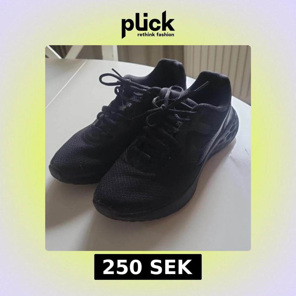 Snygga helsvarta Nike sneakers med mesh-ovandel och klassisk snörning. Skorna har en sportig vibe med rund tå och platt sula, perfekta för dig som gillar en clean och stilren look. Diskret Nike-logga på sidan och bekväm passform. Använda två tillfällen