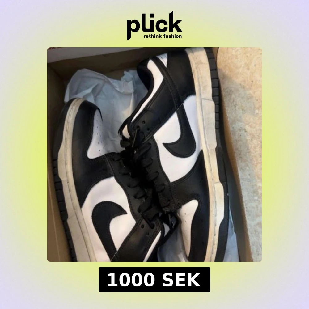 Nike Dunk Low sneakers i svart och vitt med klassisk Swoosh-logga på sidorna. Skorna har snörning, platt sula och rund tå. Tillverkade i skinn med kontrasterande paneler och perforering på tån för extra ventilation. Perfekt för dig som gillar streetwear och sportig stil.