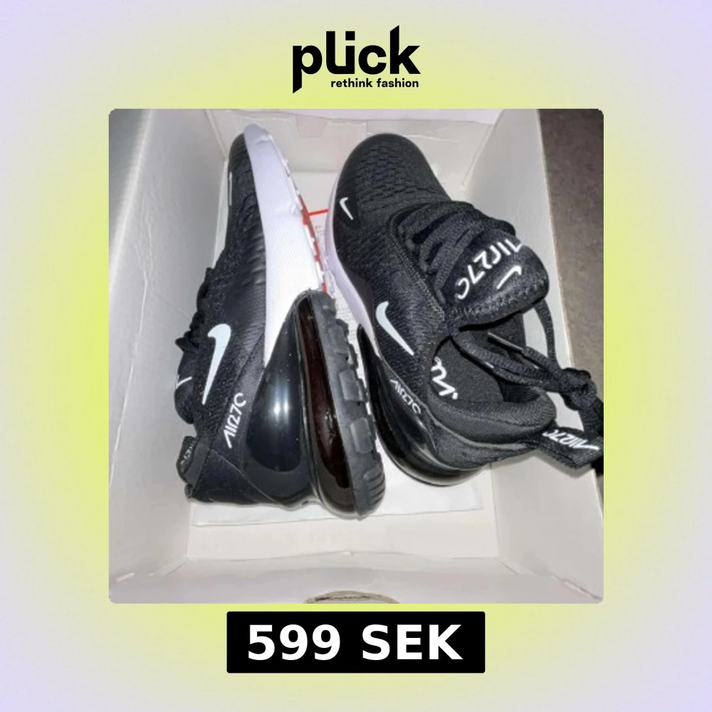 Nike Air Max 270 sneakers i svart mesh med vita och orange detaljer. Snygg design med stor synlig Air-enhet i hälen, vit och svart sula samt orange undersida. Skorna har snörning och är perfekta för dig som gillar sportig och modern stil.