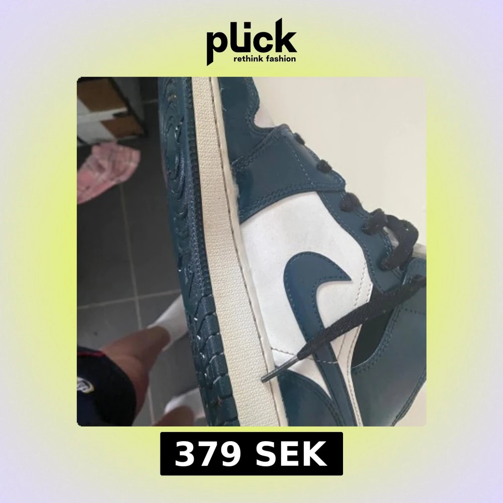 Säljer ett par Nike Air Jordan 1 Mid i blått och vitt med svarta skosnören. Skorna har klassisk Jordan-design med rund tå, snörning och vit sula. Ovandelen är i skinn och syntet, vilket ger en clean och sportig look. Perfekta för dig som vill sticka ut med stil.