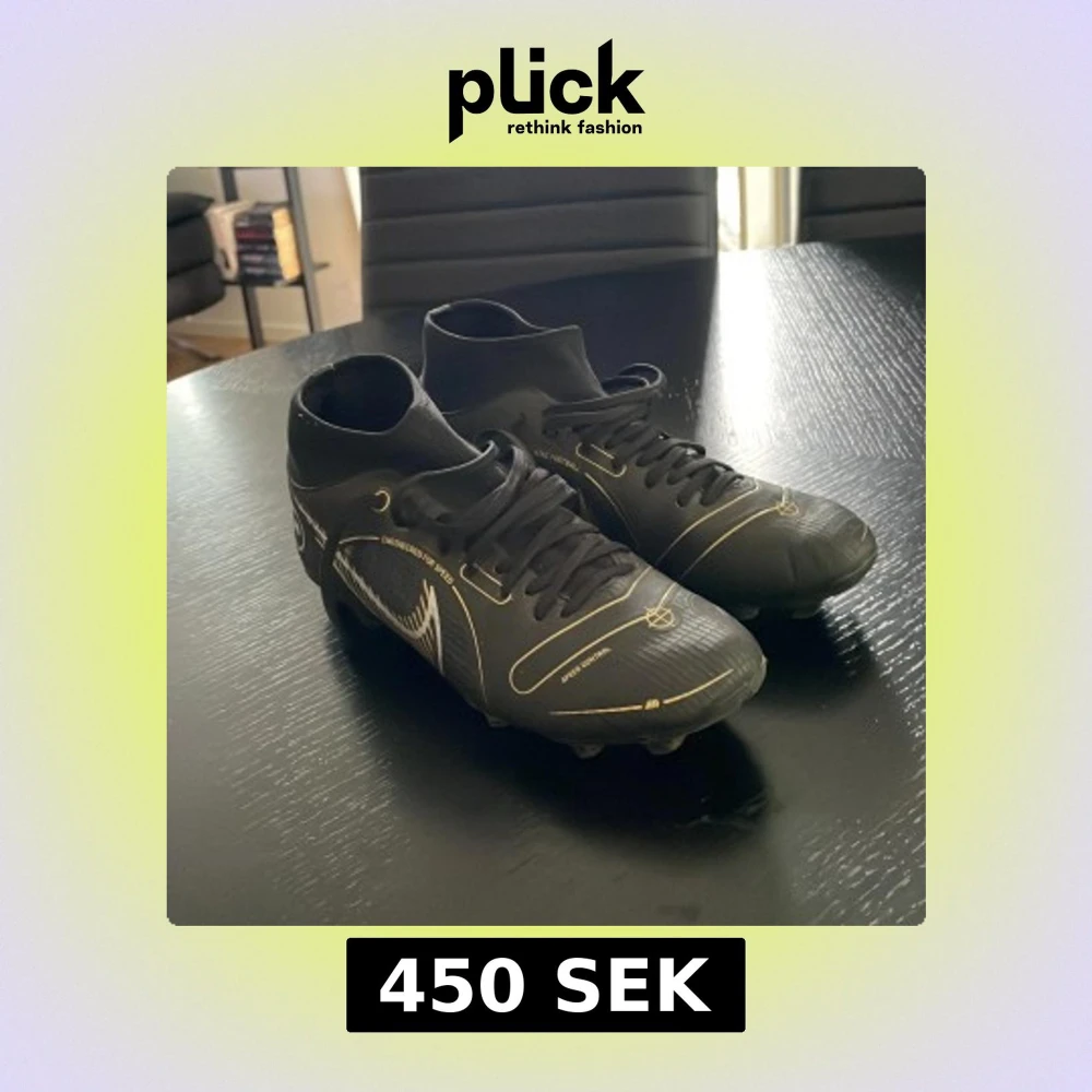 Tja! Säljer ett par svarta fotbollsskor från Nike, de är använda jätte lite pga fel storlek. Jätte bra skick på skorna förutom att skosnörena är lite slitna på toppen. Hör av dig om du är intresserad eller om du har frågor!