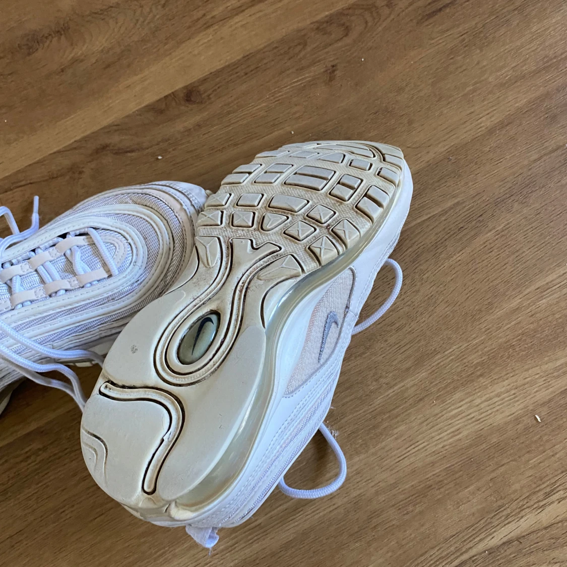 Säljer ett par vita Nike Air Max sneakers. Kommer tyvärr inte till användning. Storlek 40, passar mig bra som har storlek 39.