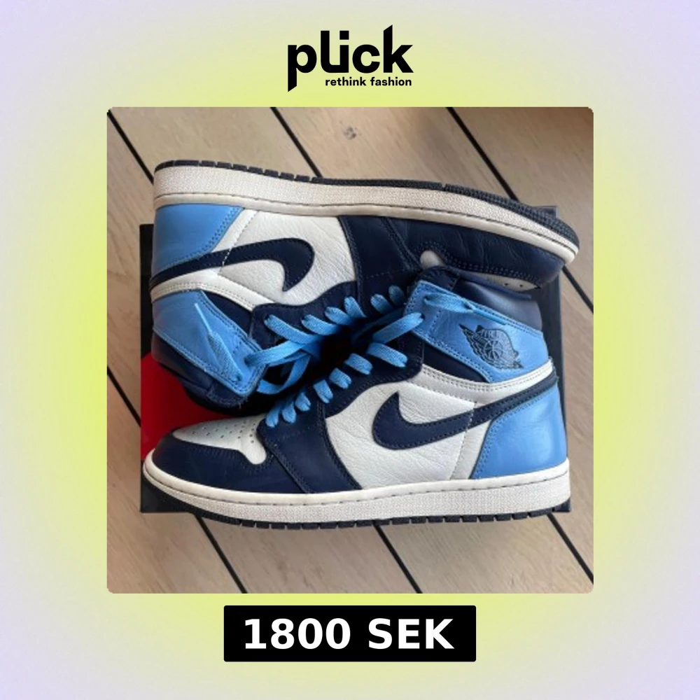 Tja, säljer dessa Air Jordan 1 High Obsidian — Väldigt fint skick 8,5/10. Säljer för 1800kr men kom med bud! OG box, snören och kvitto finns!