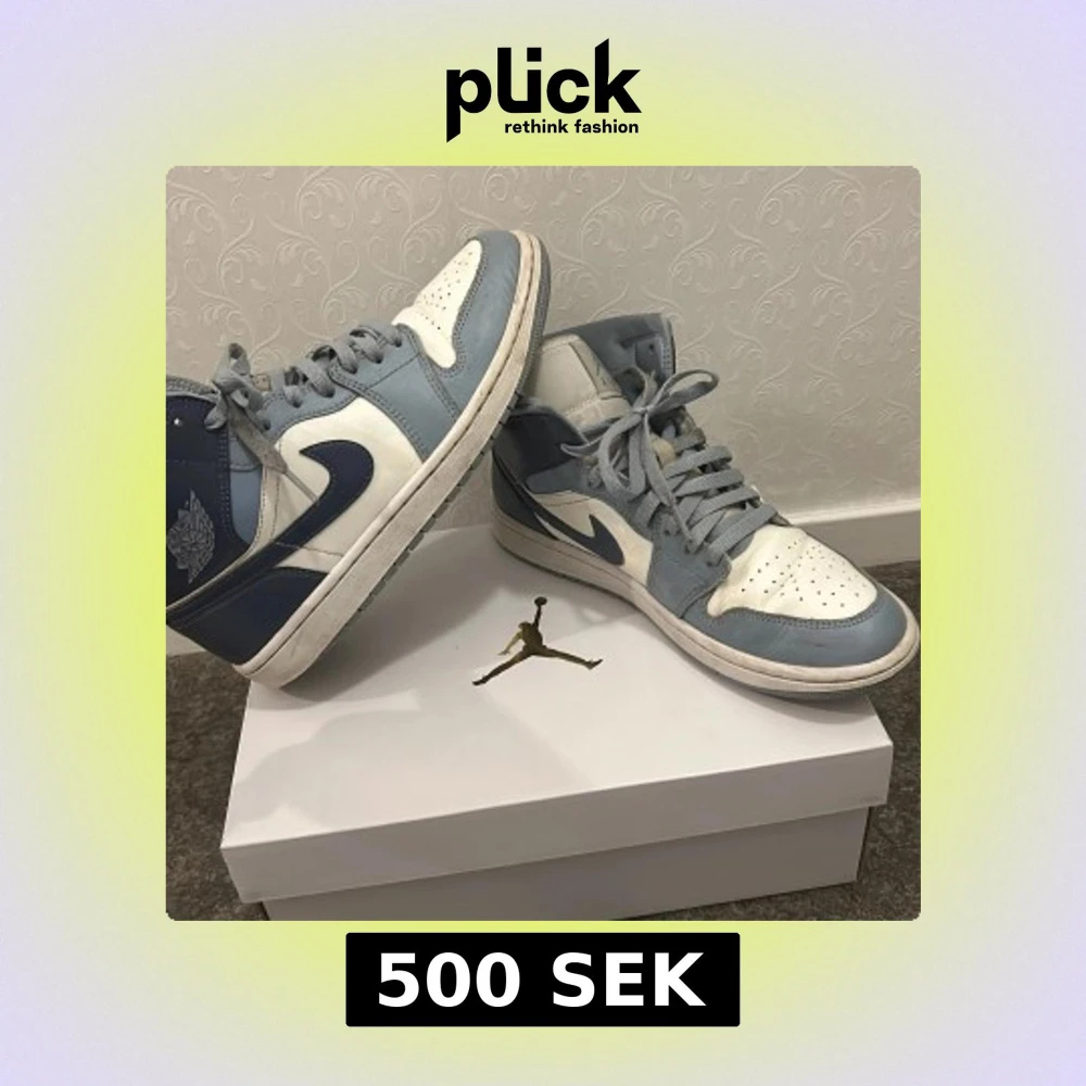 Snygga Nike Air Jordans i en stilren kombination av blått och vitt. Skorna har klassisk snörning och är tillverkade i skinn. Perfekta för dig som vill ha en sportig och trendig look.