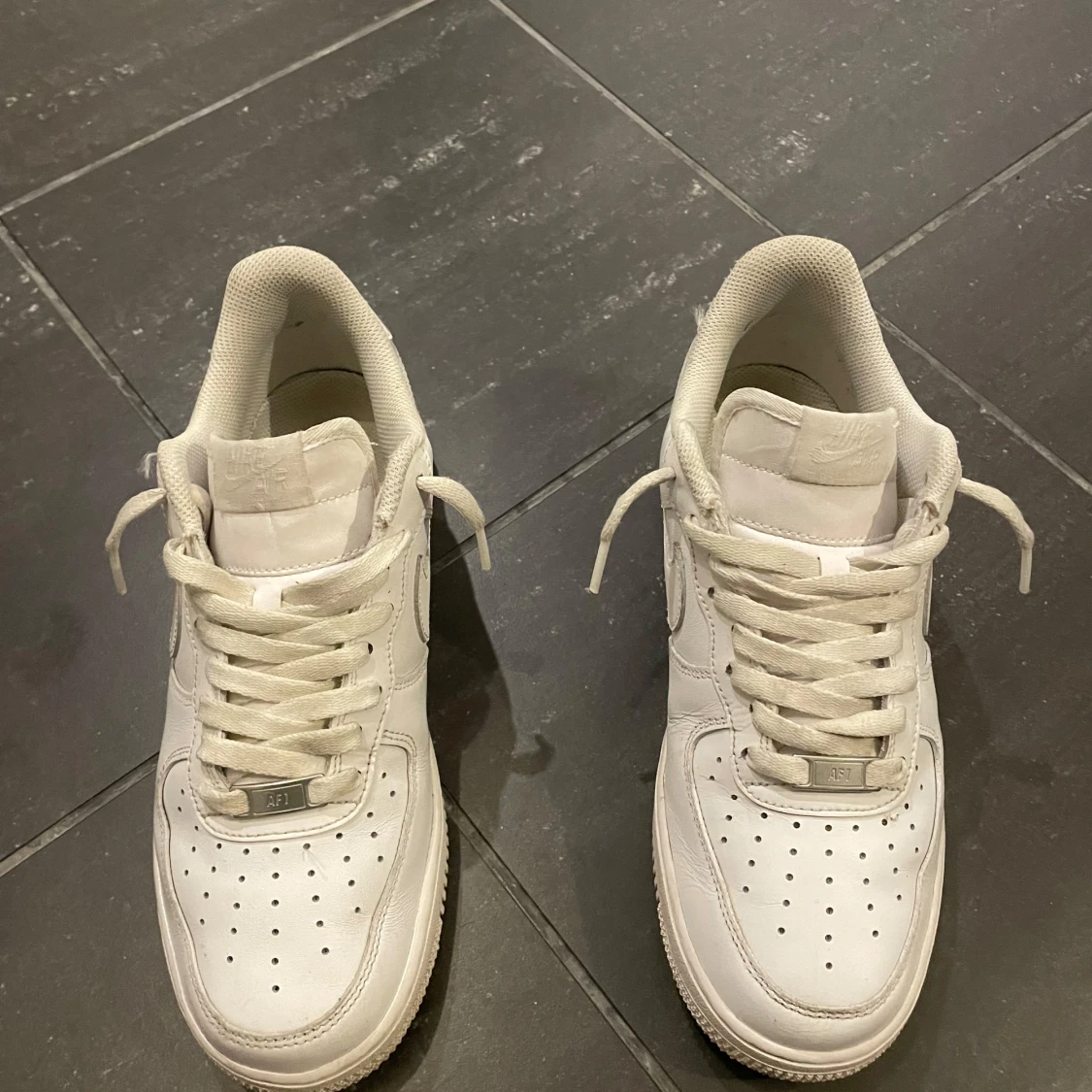 Ett par airforce one i mycket bra skicka, lite creasade men inte mycket. Det är inte sönder där bak, det är bara fläckar. Köpta för 1399, mitt pris: 749) pris går att diskutera!