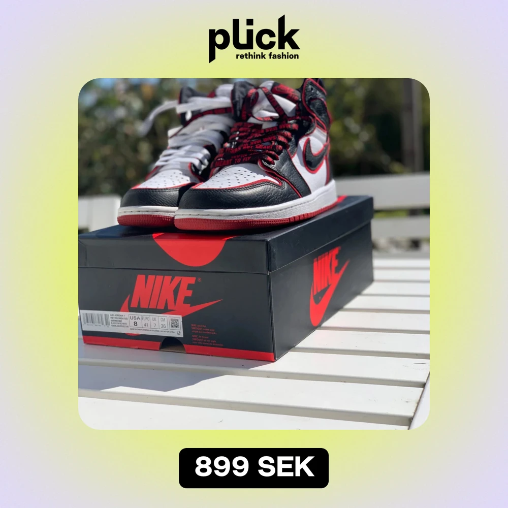 Säljer ett par Nike Air Jordans i klassiska färgerna svart, vitt och rött. Skorna är i nytt skick och kommer med originalkartong. Perfekta för både vardag och fest, med snygg snörning och ikonisk design. Storlek 41. Det finns 2 olika snören så skorna behöver inte ha olika snören om man inte vill. Har inte använt de på ett år så säljer det billigt. Först till kvarn