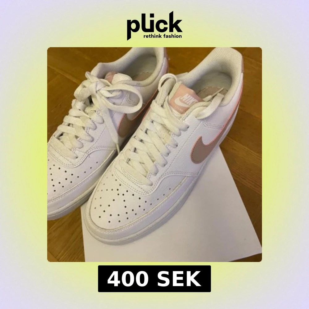 Snygga Nike sneakers i vitt med rosa detaljer. Skorna har klassisk snörning och en bekväm passform. Perfekta för en stilren look med en touch av färg. Använt max 2 gånger