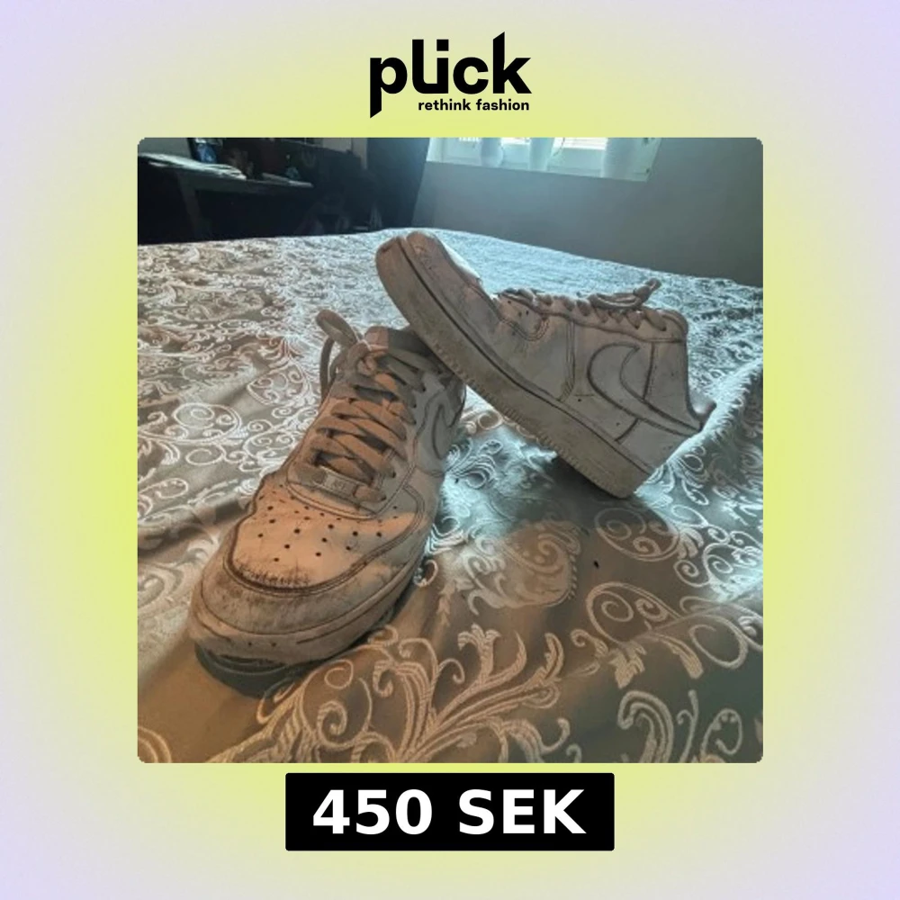 Nike Air Force 1 sneakers i klassisk vit färg med snörning och platt sula. Skorna har rund tå och är tillverkade i skinn med perforerade detaljer på tån för extra ventilation. Swoosh-loggan syns tydligt på sidan och designen är tidlös och street.