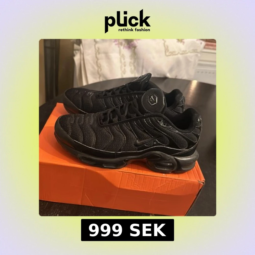Snygga svarta Nike sneakers med TN Air-dämpning. Skorna har en stilren design med snörning och en bekväm passform. Perfekta för både vardag och träning.