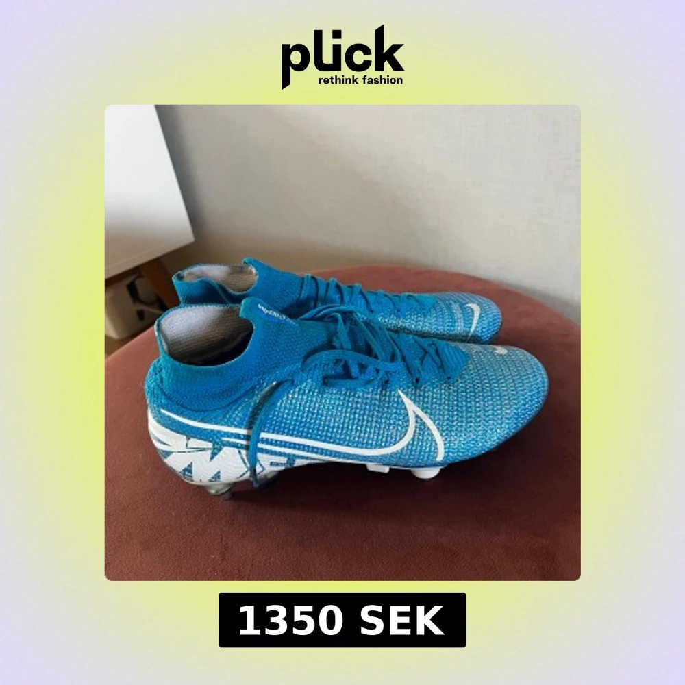 Säljer ett par Nike Mercurial Superfly 360 fotbollsskor i blått med vita detaljer och text. Skorna har snörning, högt skaft och metall-dobbar för bästa grepp på planen. Ovandelen är i stickad syntet för en tight passform och maximal bollkontroll. Påsen ingår även , passar även 42