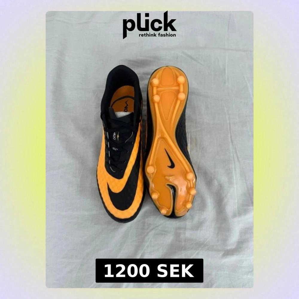 Säljer ett par Nike fotbollsskor i svart och gul med stor Swoosh-logga och cool dödskalle-detalj på hälen. Skorna har snörning, platt sula med dobbar och är tillverkade i syntetmaterial för bästa grepp på planen. Perfekta för dig som vill sticka ut på matchen! Köptes 1899kr utan box :(
