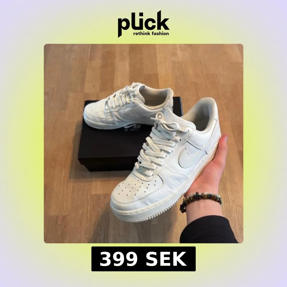 Klassiska Nike Air Force 1 sneakers i helvitt. Perfekta för dig som gillar en clean och stilren look till höst och vinter 🍁. 8/10 skick ✅ Skickar inom 48 timmar 🚚 Priset är förhandlingsbart 👍 Endast skor