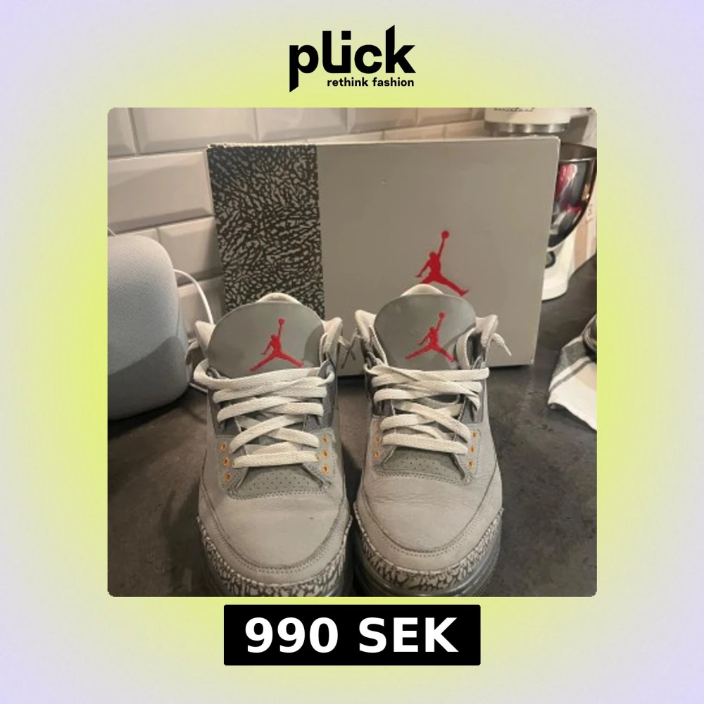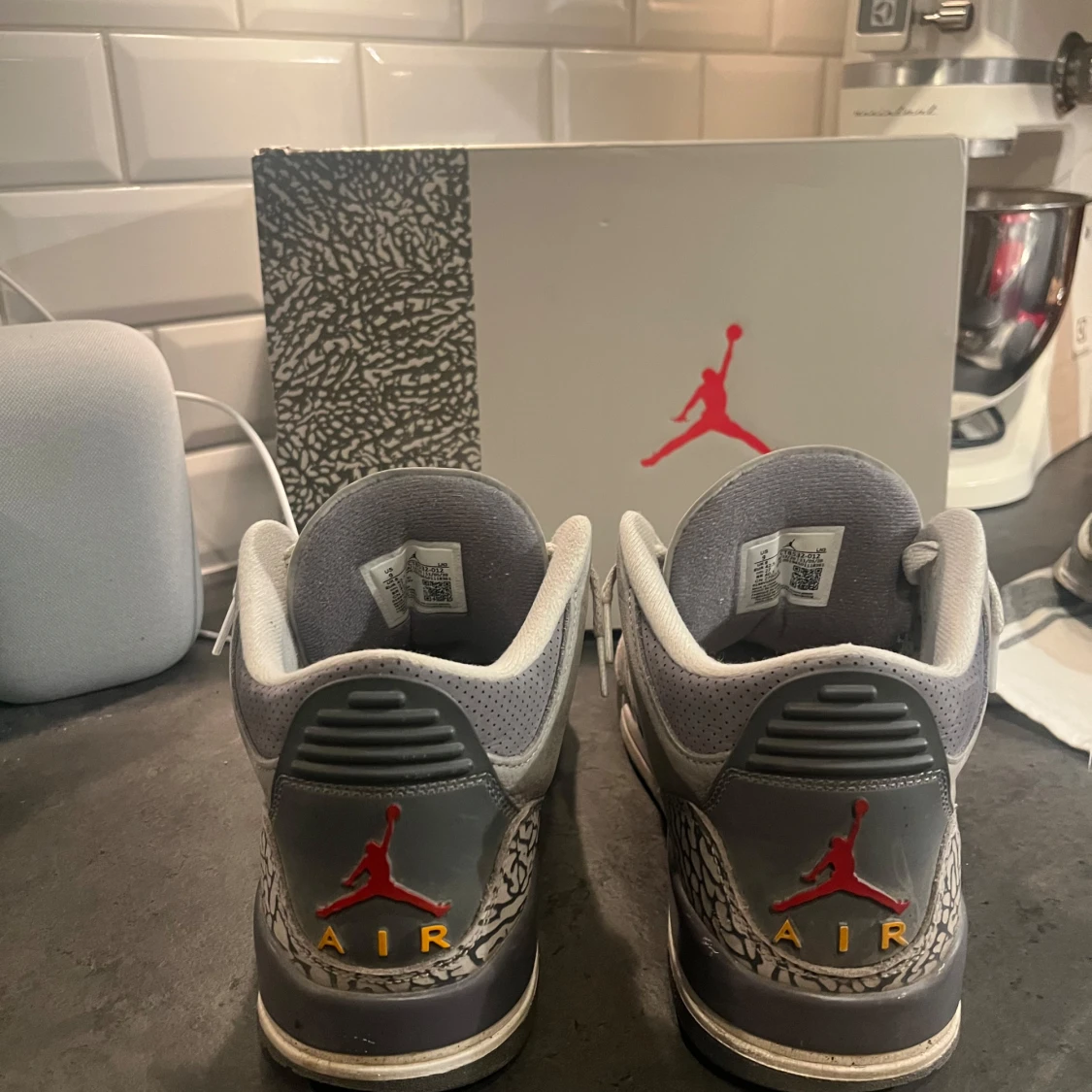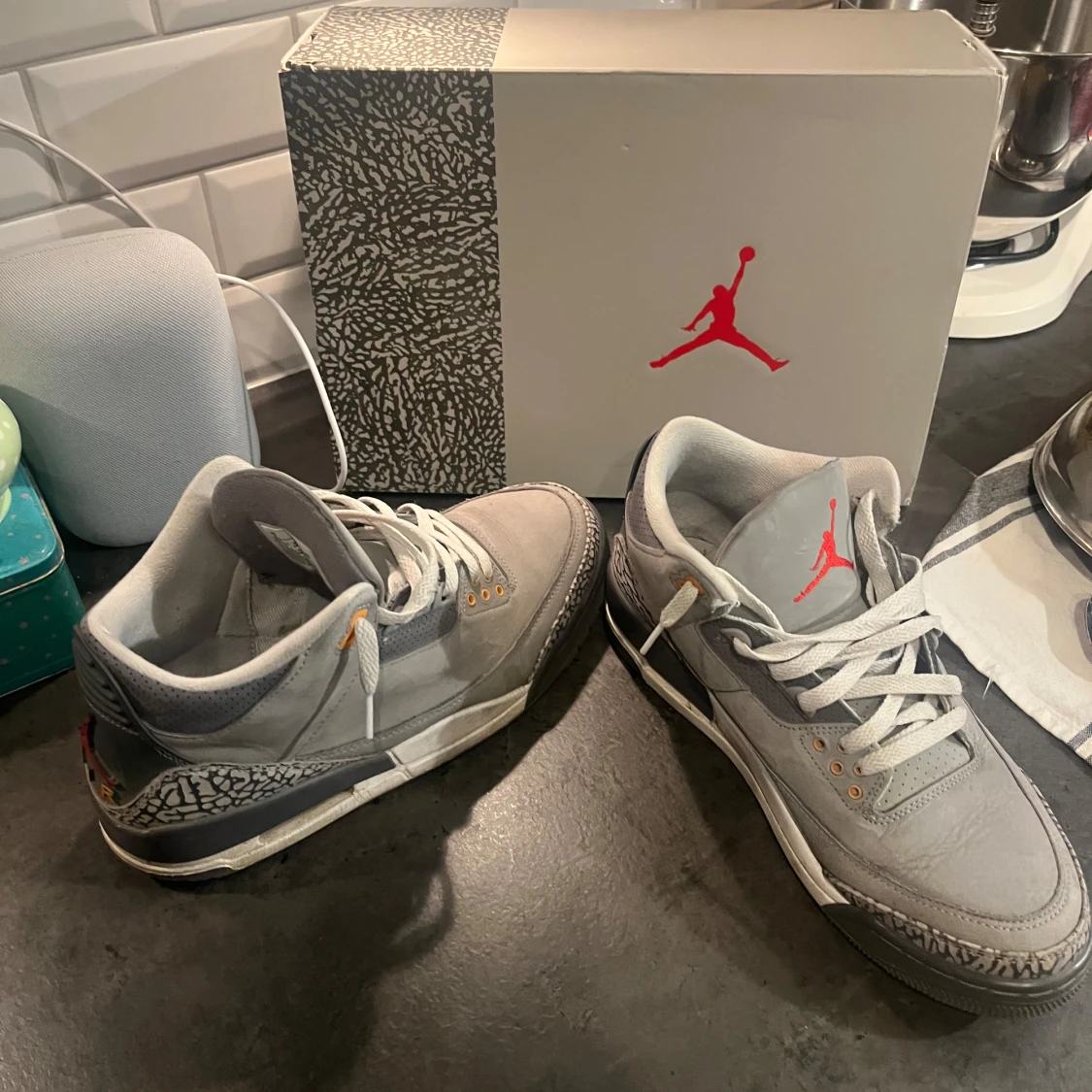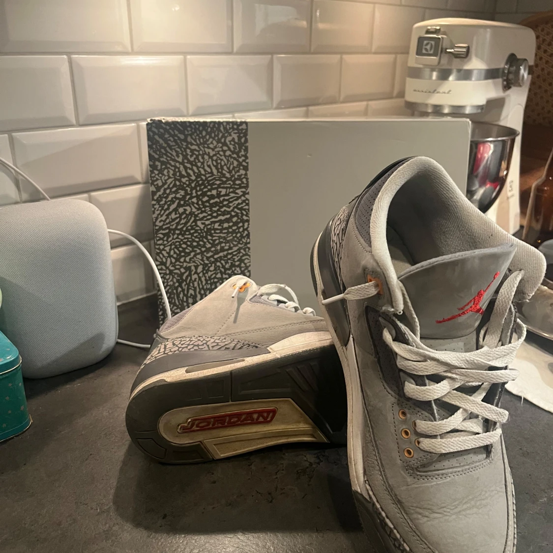 Nike Air Jordan 3 Retro Cool Grey med grå mocka och läder, vita snören och ikoniska elefantmönster på tån och hälen. Röd Jordan logga på plösen och baksidan, samt gula detaljer vid snörningen. Perfekta sneakers för dig som vill sticka ut🤙🙏