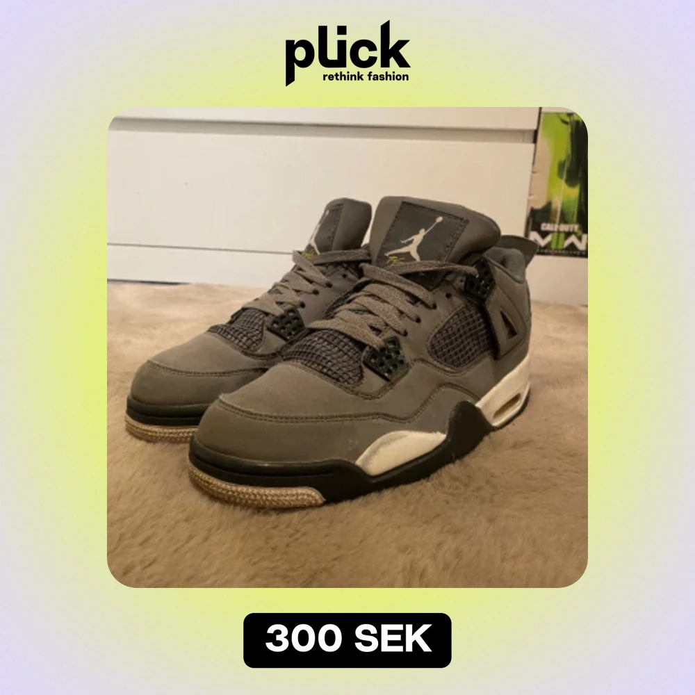 Jordan 4 i helt ok skick, fläckar och skador kan ses på bilder. Men fortfarande fina skor. //inte äkta