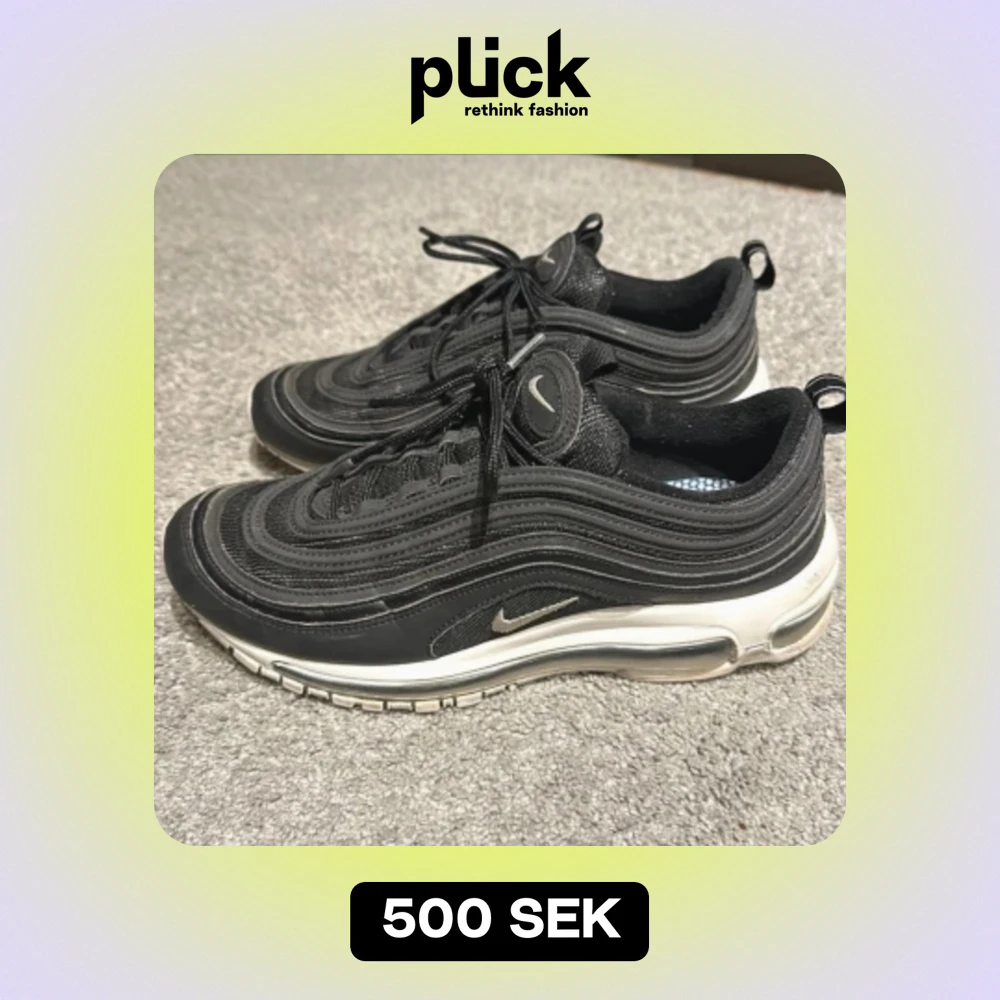 Säljer ett par svarta Air Max 97 med vit sula. Bra begagnat skick Satt in nya oanvända innersulor. Storlek : 42 Ganska små i storleken. Så funkar för 41-41,5 Nypris ligger på 2200kr