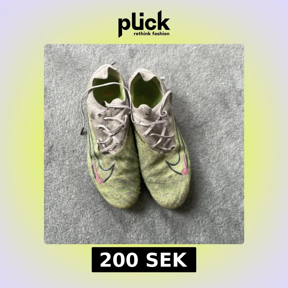 Nike Phantom GX fotbollsskor i grått och ljusgrönt med svarta och rosa detaljer. Ovandel i stickad syntet med spiralformade mönster, snörning och rund tå. Yttersula med fasta dobbar och rosa Swoosh-logga undertill. Perfekta för dig som vill sticka ut på planen.väldigt använde säljer till ett bökigt pris
