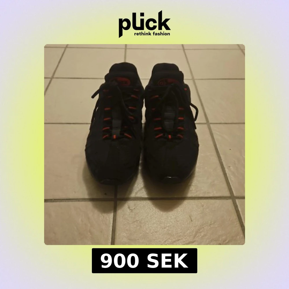 Svarta Nike Air Max sneakers med röda detaljer och snörning I storlek 42 dom är andvända men det är intr så tydligt.