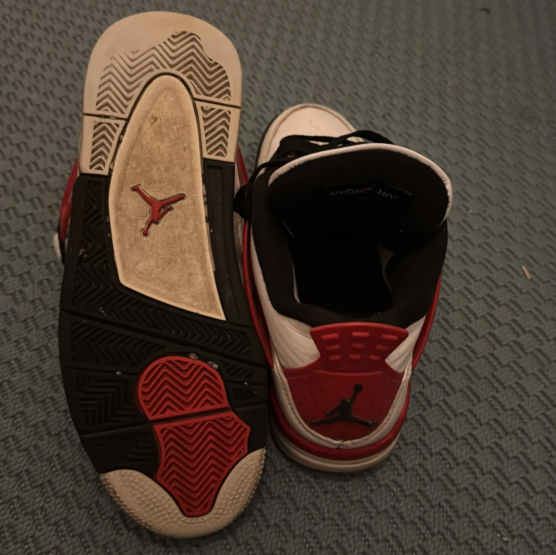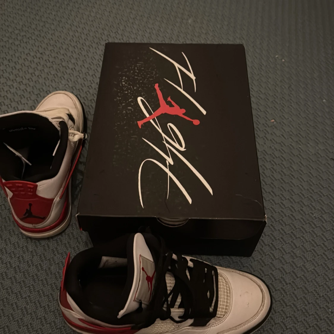 Snygga Nike Air Jordans med en klassisk design i vitt, rött och svart. Skorna har snörning och den ikoniska Jumpman-loggan på tungan och hälen. Perfekta för sneakerheads som älskar en tidlös stil. Skorna är helt äkta kan mötas upp och kollas upp. Kommer med box samt tvättar jag dem innan köp. Dem är köpta från foot Locker.