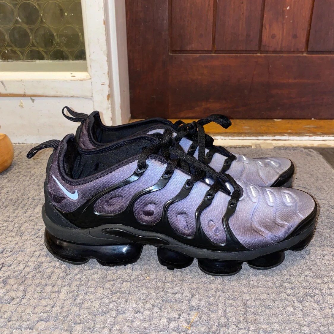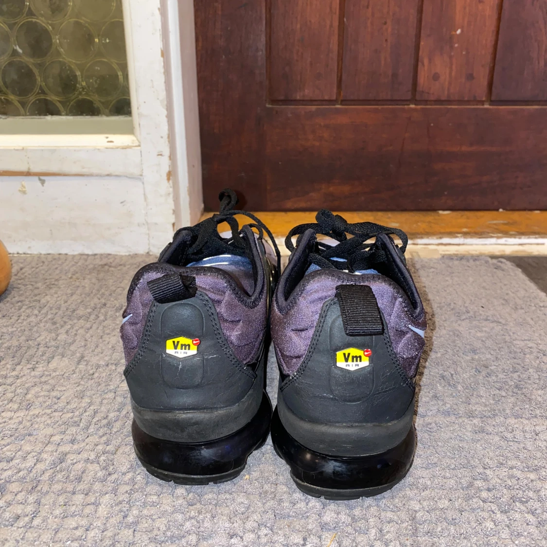 Nike Air Vapormax Plus sneakers i svart och silver med futuristisk design och synlig Air-sula. Ovandel i syntetmaterial med svarta detaljer och snörning. Swoosh-logga på sidan och 'Vm Air' på hälen. Grym komfort och unik look för dig som vill sticka ut. Bubblan på vänstra foten är sprucken men man märker inte det när man går, utan kartong och går ner i pris vid snabb affär