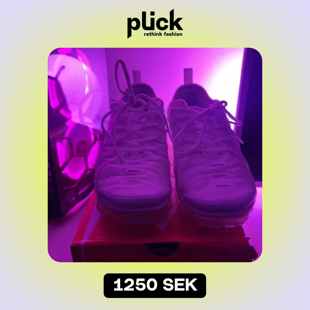 Vita Nike vapormax (låda medföljer) Använda lite några fläckar som ej syns men dom synd om man kollar nära. (Nyskick) i storlek 42 passar även bra 43