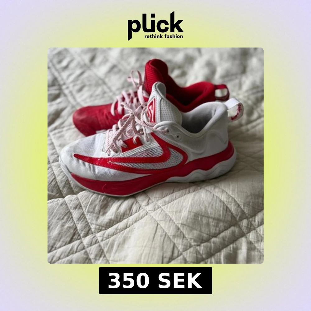 Snygga Nike sneakers med unik design där ena skon är röd och den andra vit, båda med röda detaljer och snörning. Ovandelen är i mesh och syntet för bra andningsförmåga och komfort. Sulan är vit och röd med coolt mönster undertill. Perfekta för dig som vill sticka ut.