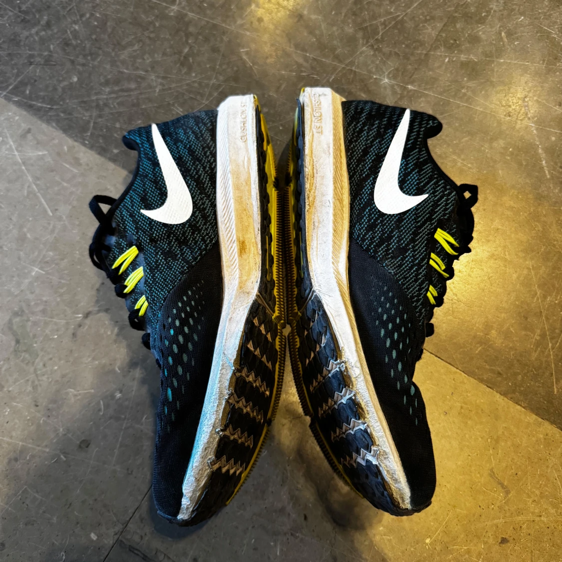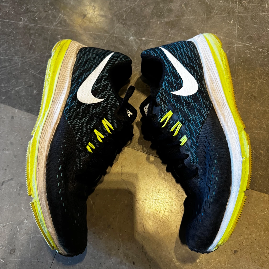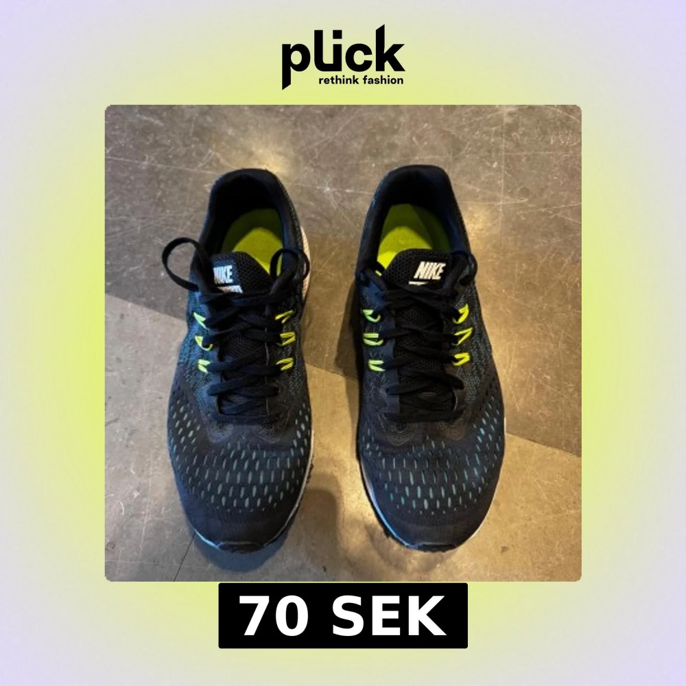Snygga svarta Nike löparskor med vit swoosh och coola gula detaljer på snörningen. Ovandelen är i mesh för bra andningsförmåga och sulan är vit med gul kant. Perfekta för dig som gillar att sticka ut på löprundan eller på gymmet. Storlek 42.