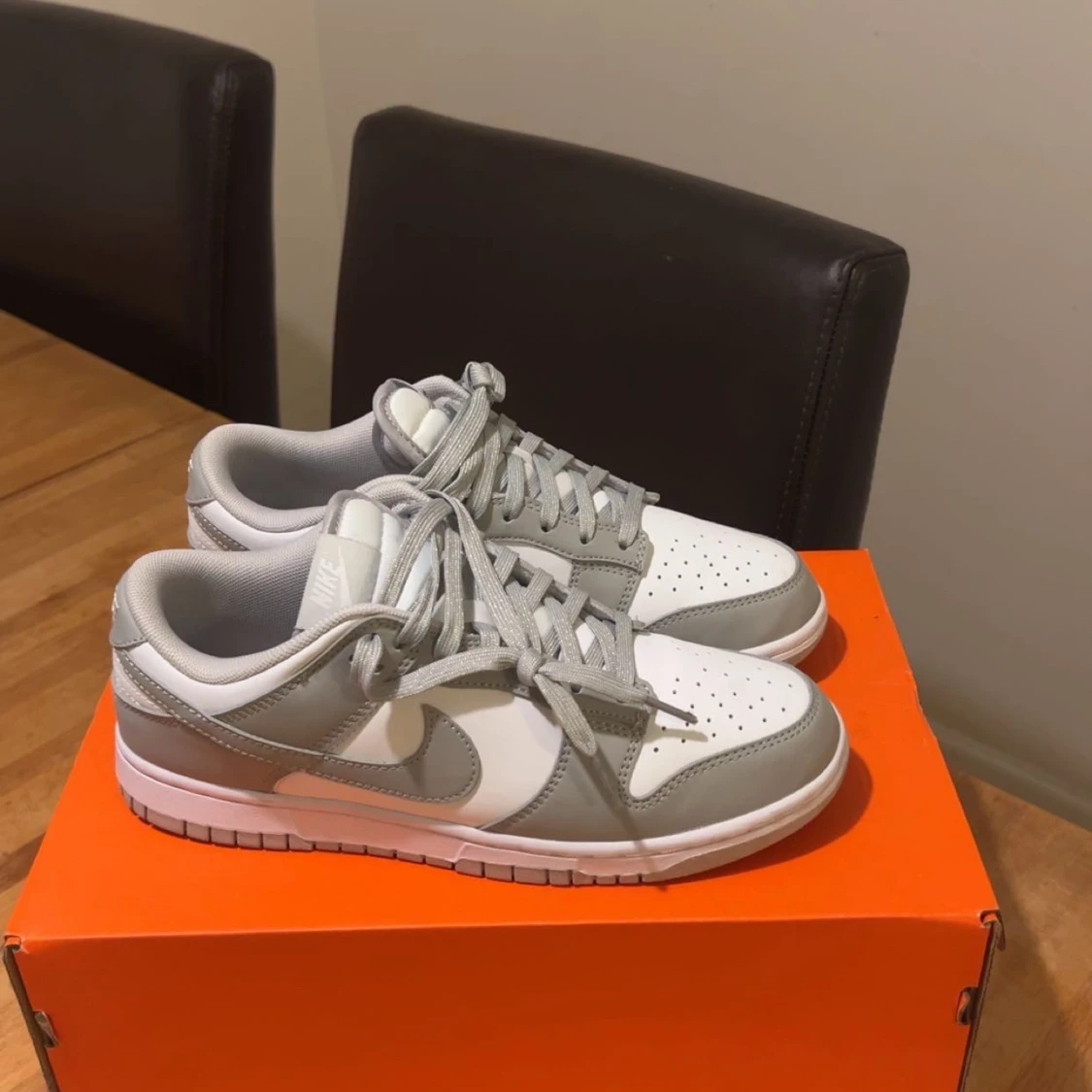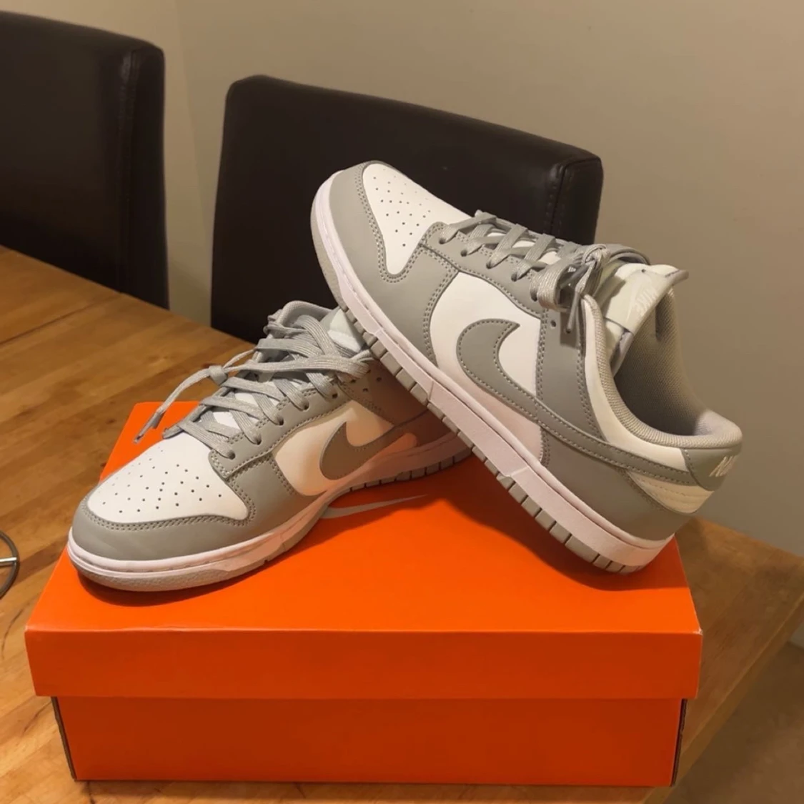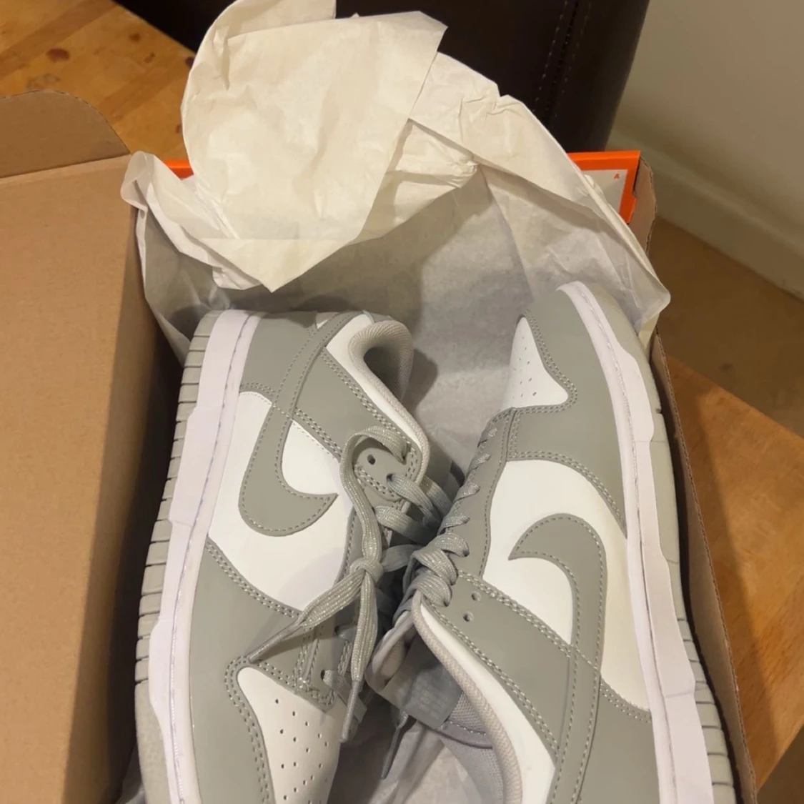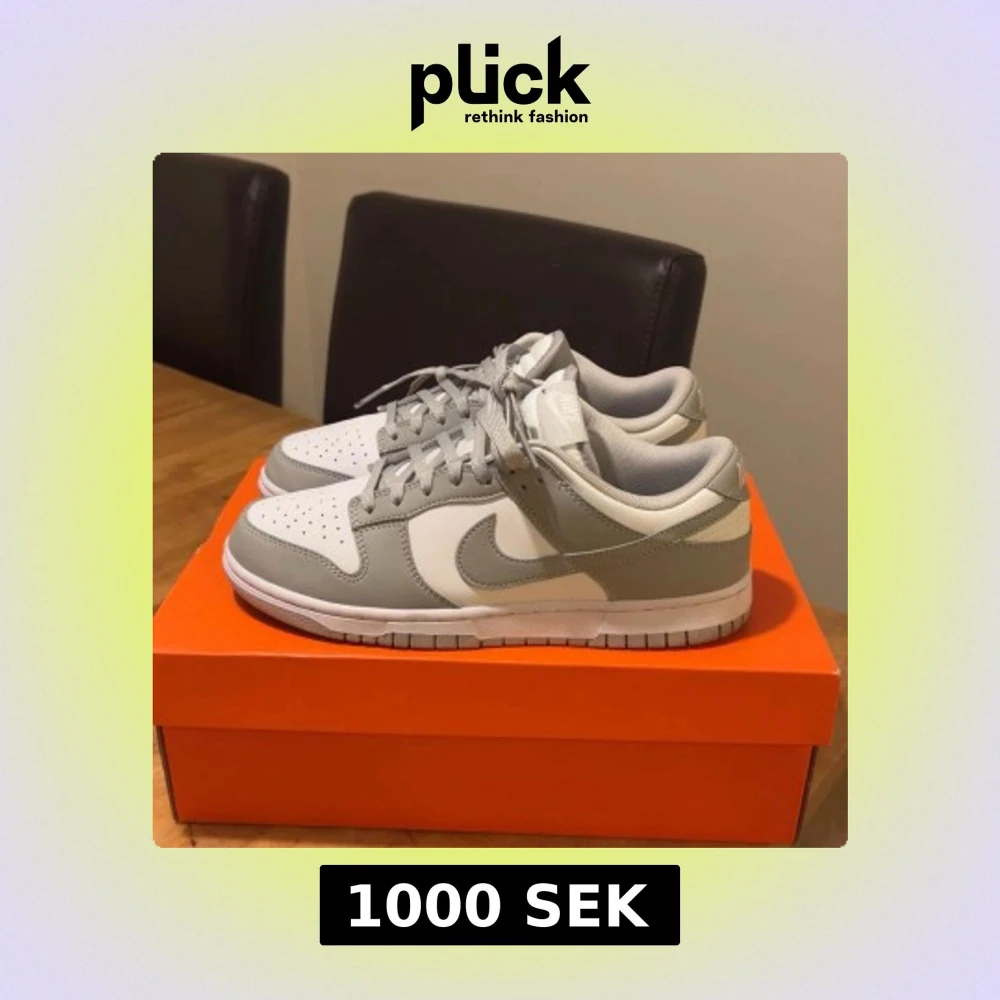 Säljer ett par fräscha Nike Dunk Low i grått och vitt. Använda 1 gång endast så i princip helt nya. Säljes för att jag behöver pengar och för att dom inte används. Köptes på Zalando för längesedan. Vid frågor eller fler bilder så är det bara att skriva!