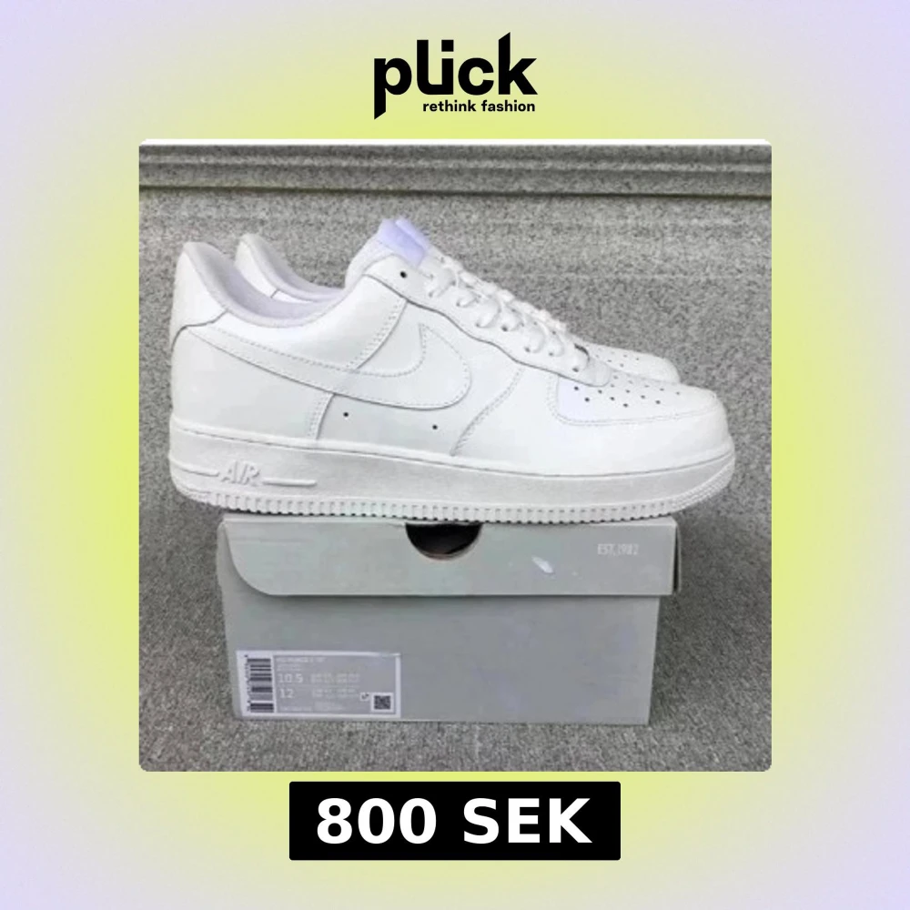 Klassiska vita Nike Air Force 1 sneakers med låg profil och rund tå. Skorna har snörning och är tillverkade i skinn med perforerade detaljer på tån för extra ventilation. Perfekta för en clean och stilren look.