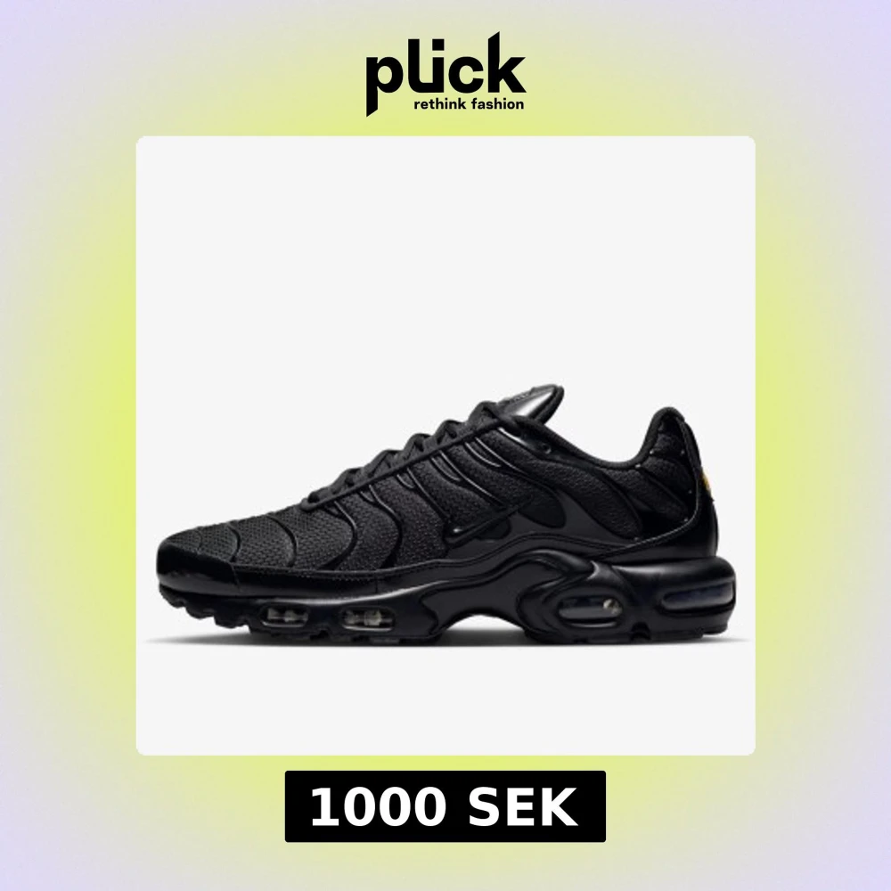 Nike Air Max Plus sneakers i helsvart färg med mesh och syntetmaterial. Snygg vågig design på ovandelen, synliga Air Max-enheter i sulan och klassisk snörning. Perfekt för dig som gillar sportig och modern stil. Levereras med originalkartong.Priset kan diskuteras