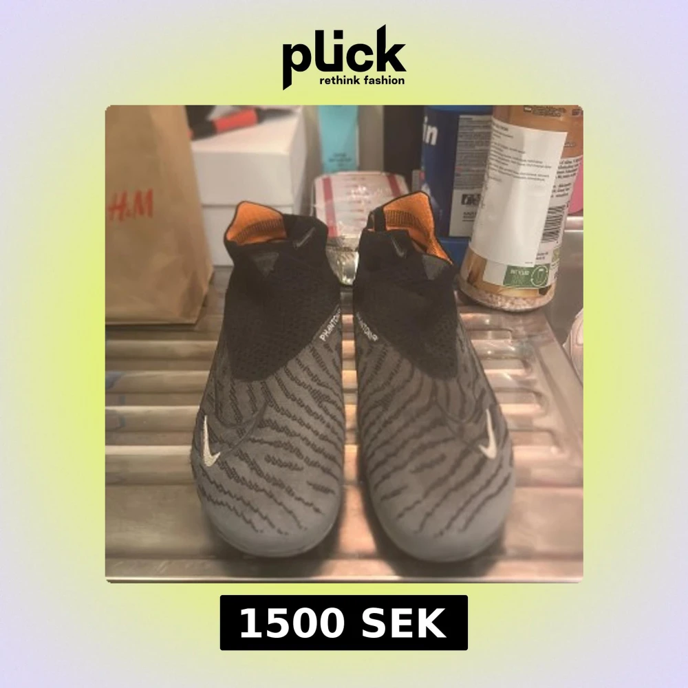 Snygga fotbollsskor från Nike med zebramönster i svart och grått. Skorna har en rund tå och är designade för optimal prestanda på planen. De har en strumpliknande passform och en iögonfallande orange detalj på insidan.
