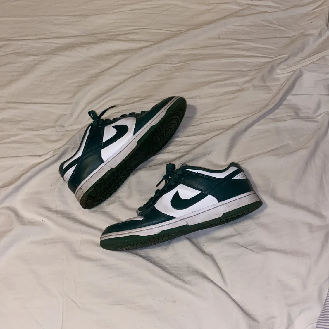 Gröna Nike dunks low storlek 43 . Lite smutsiga men går att tvätta. Pris kan diskuteras, buda! Nypris på restocks ligger på 3500kr