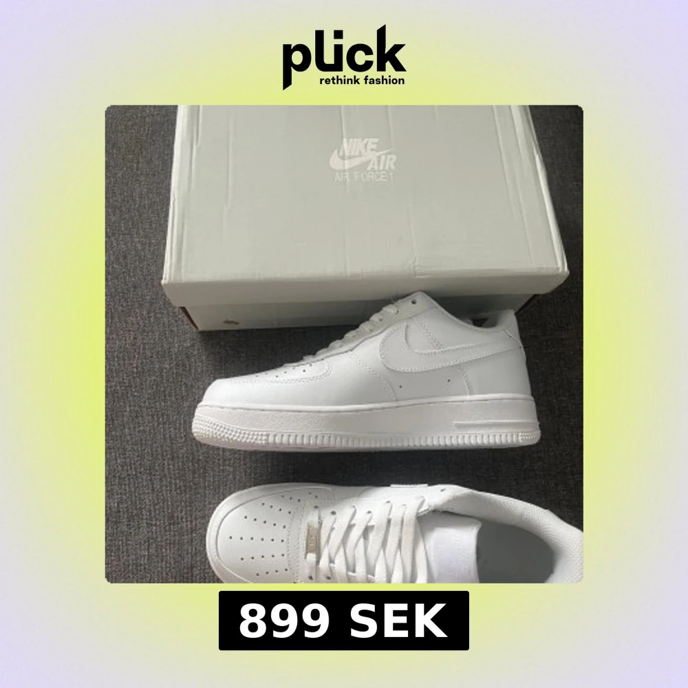 Klassiska Nike Air Force 1 i helvitt skinn med låg profil och perforerad tå. Snygg och tidlös modell med vit sula och diskret Nike-logga på sidan. Perfekta för dig som vill ha en clean och stilren look till vardags.
