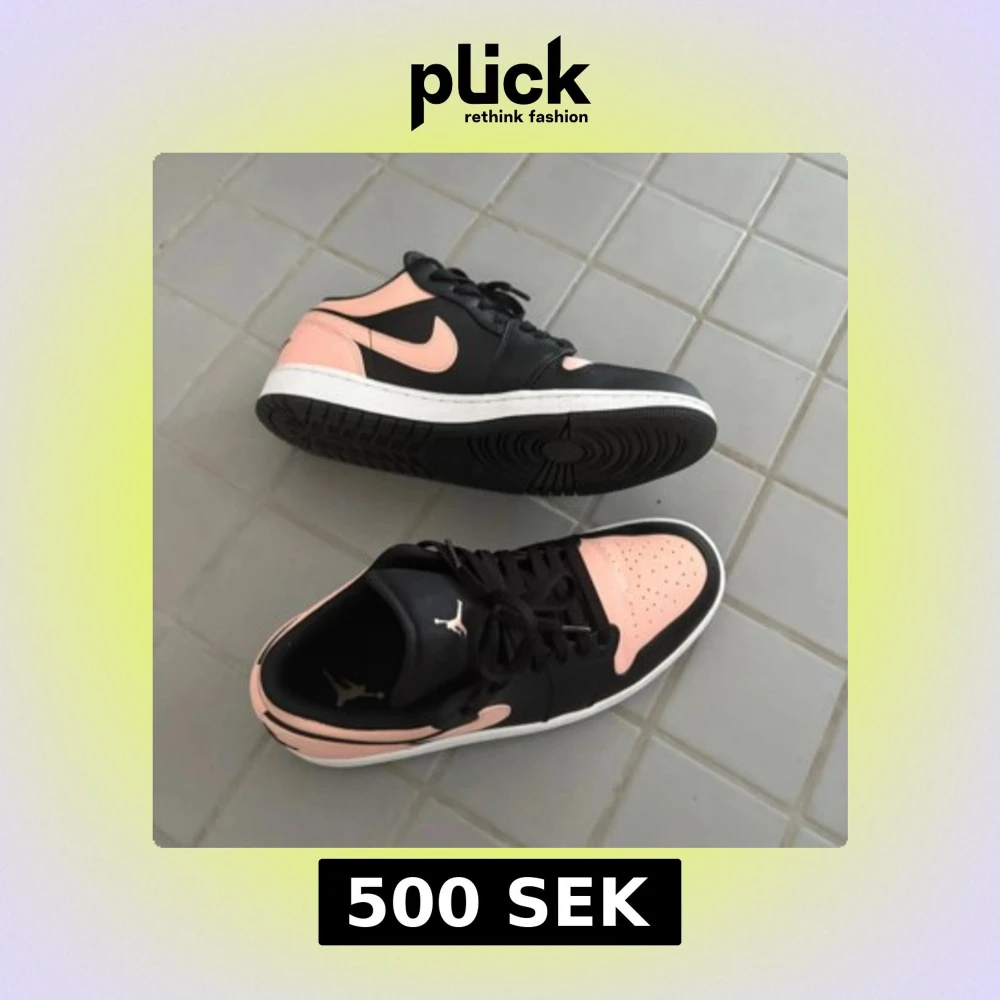 Nike Air Jordan 1 Low Crismon Tint sneakers i svart och ljusrosa läder med vit mellansula och svart yttersula. Klassisk Jordan-logga på hälen och Swoosh på sidan. Lågt skaft och snörning framtill. Perfekt för dig som vill sticka ut med en snygg färgkombo.
