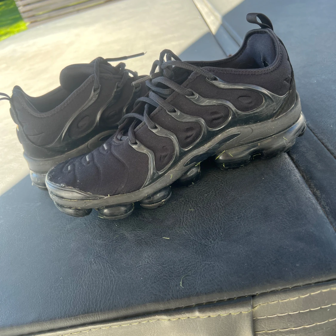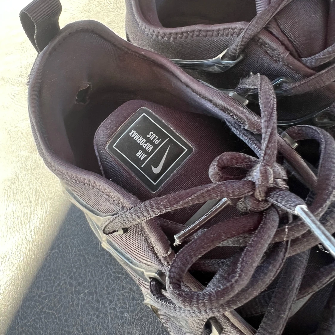 Svarta Nike Air Vapormax Plus sneakers med chunky, genomskinlig sula och coolt mönstrad ovandel i syntet. Snygga detaljer med snörning och diskret Swoosh på sidan. Perfekt för dig som gillar streetstyle och vill ha en unik look. PRIS KAN DISKUTERAS